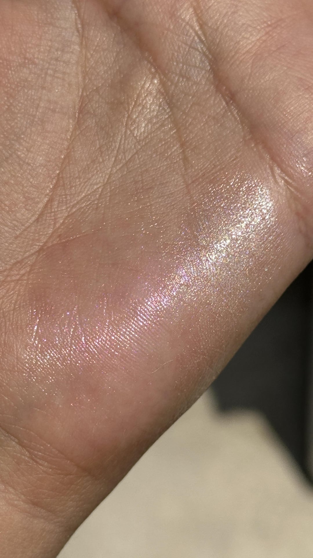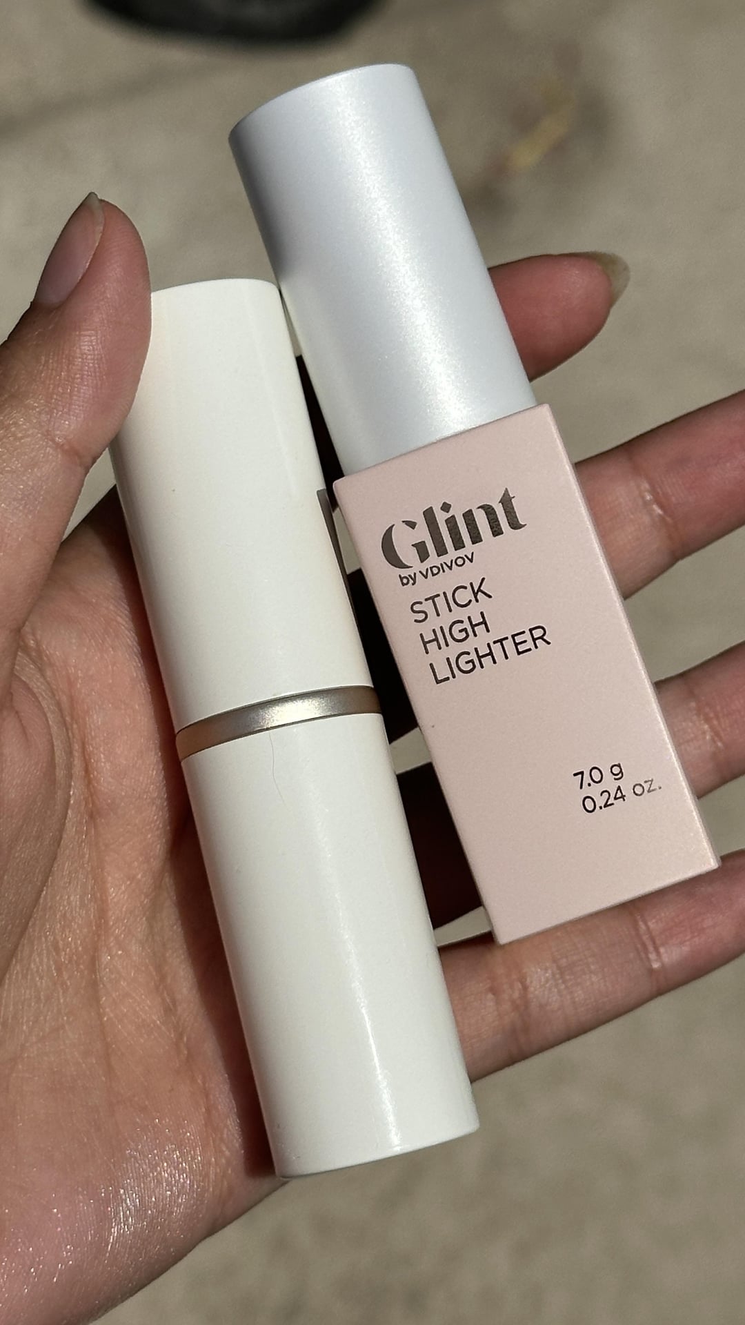 Glint Stick is in shade #02 Milky Moon: Clear base with pink sparkles which gives a soft iridescent look without being TOO colorful.