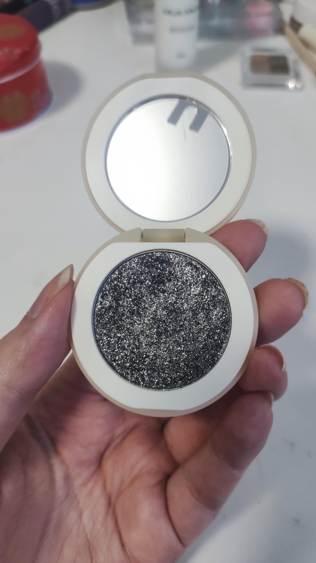 Eyeshadow: INTO YOU BOOM Single eyeshadow in shade 02 + dark gray shade from Cheeryp 07 eyeshadow palette + Cappuvini glitter under lower lash line