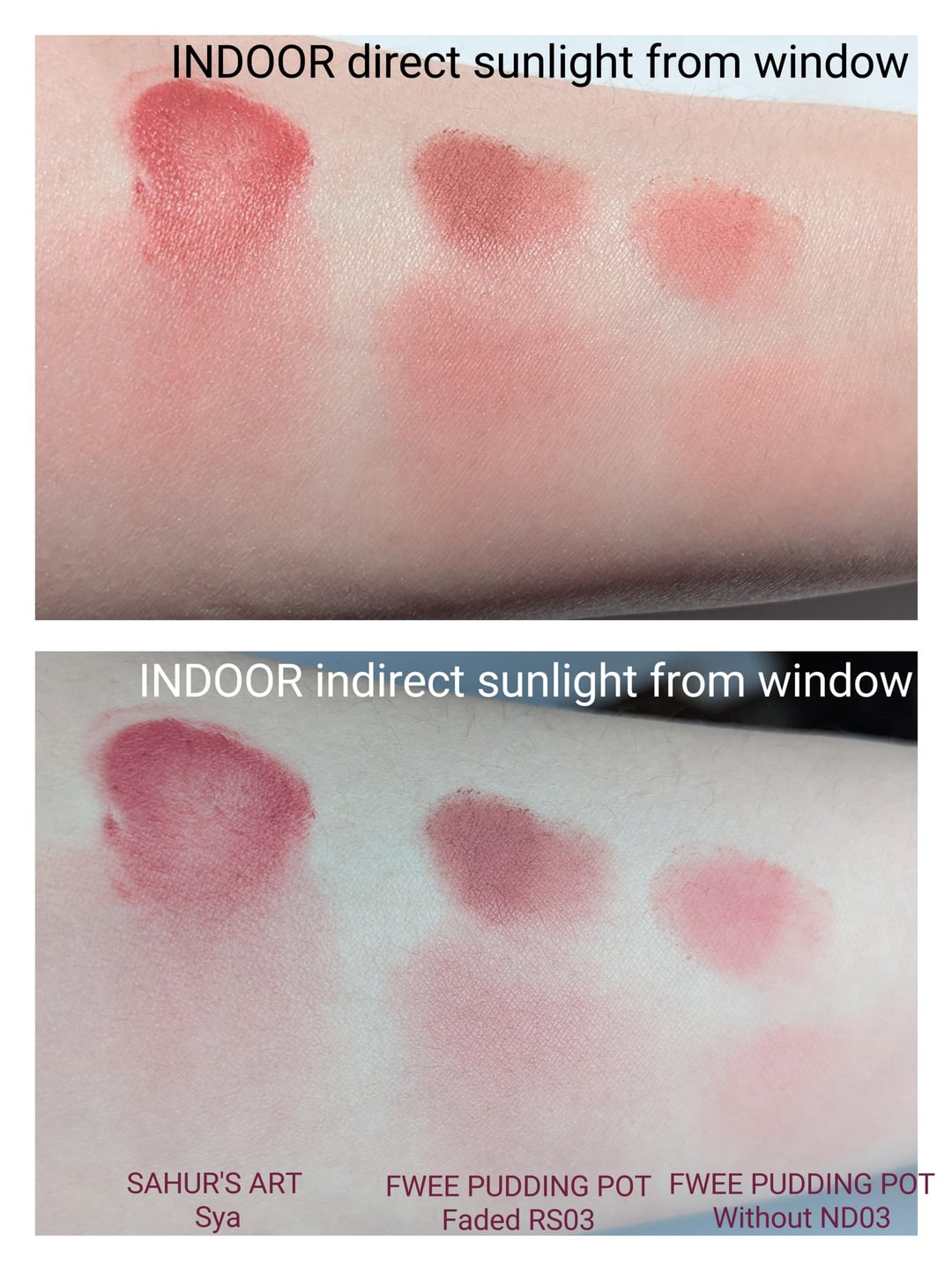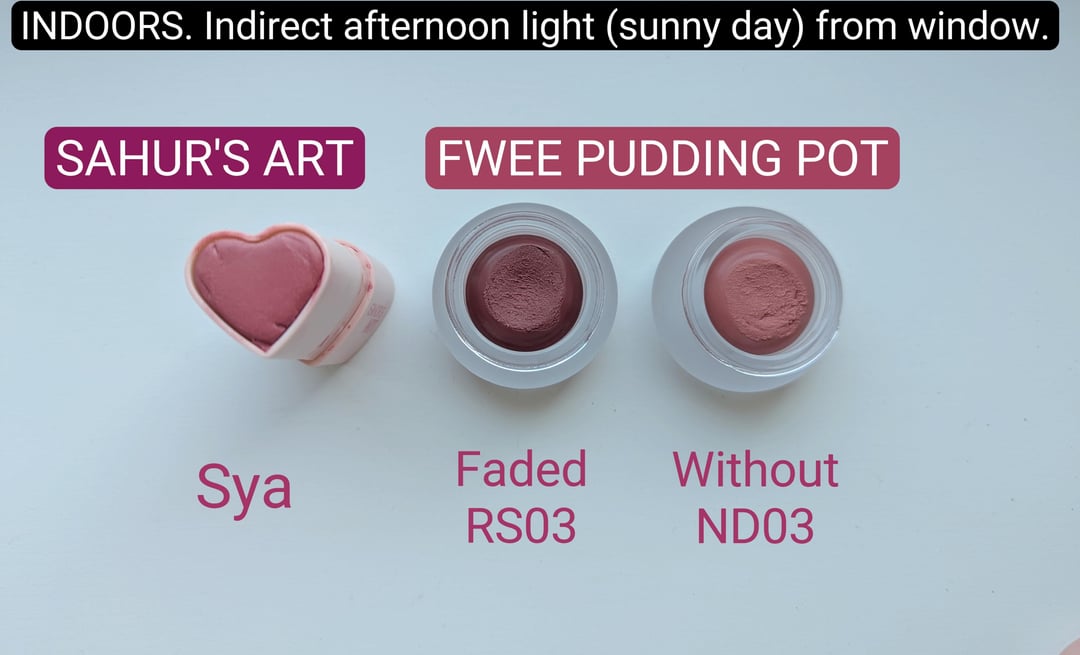 FADED: Neutral dusty rose, as described there is a slight brown/grey quality to it that makes this a super lovely neutral blush and MLBB lip colour for fair to medium skintone. As compared to the SAHURS ART in Sya (on it's own i would describe as a neutral rose pink), this looks more muted in comparison. Really like this on the lips too as an alternative "natural" red lip, if there is such a thing.