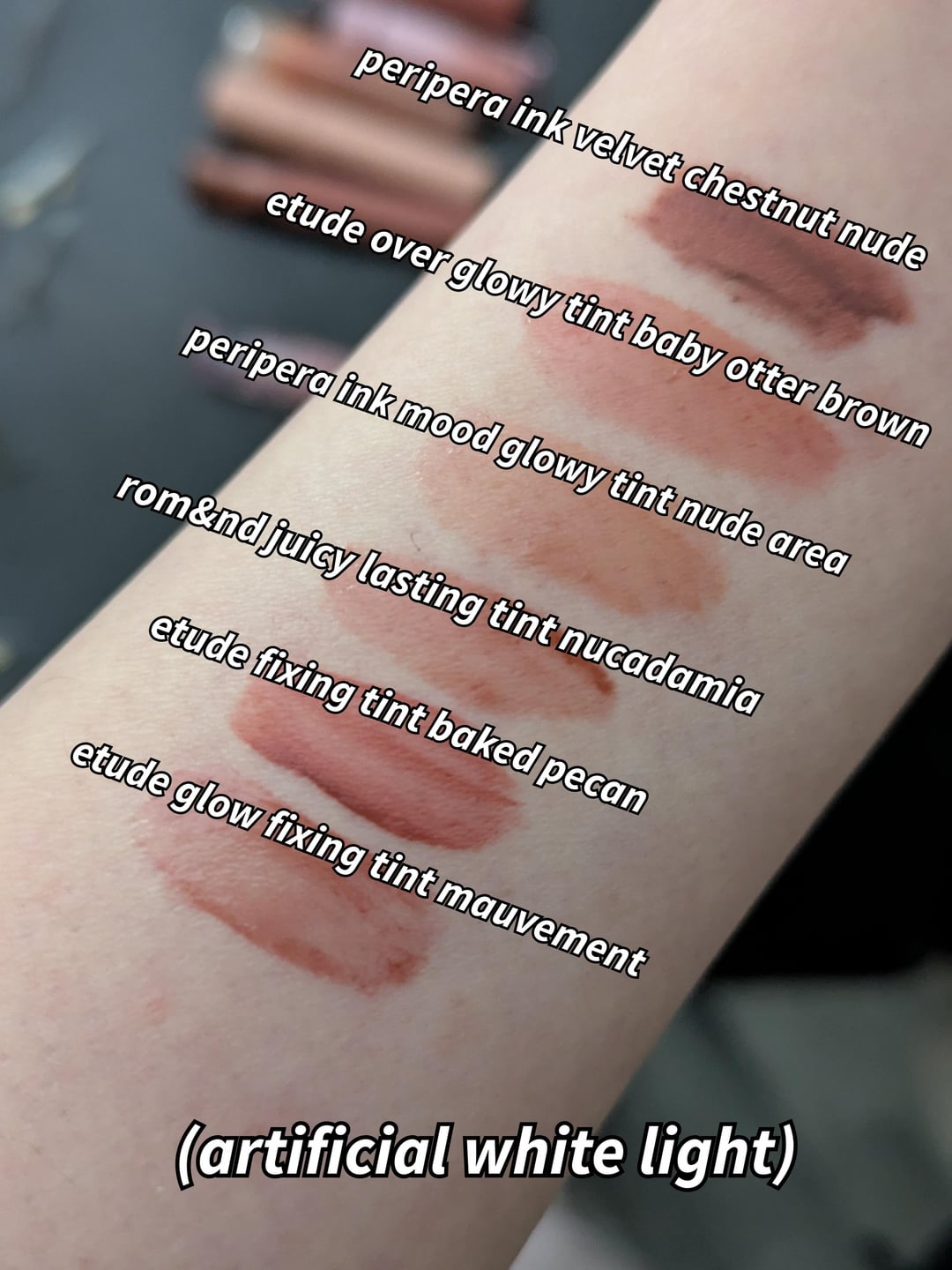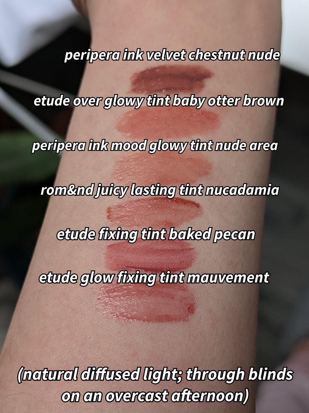 I'm not sure if this is the right place to ask but with lip products tbh I've never been sure how to get the colour I'm aiming for? I bought a few products recently with the intent of finding a MLBB-type desaturated, browny-pink/red nude, but I feel like things always end up too red or too saturated on me. Some pics for reference, which swatched redder than I expected, and the last pic is kinda what I'm looking for (except that shade I'm wearing only looks that muted indoors 😞). The name of that shade is peripera's nutty nude, which looks more bright/pinky? outdoors for me unfortunately.