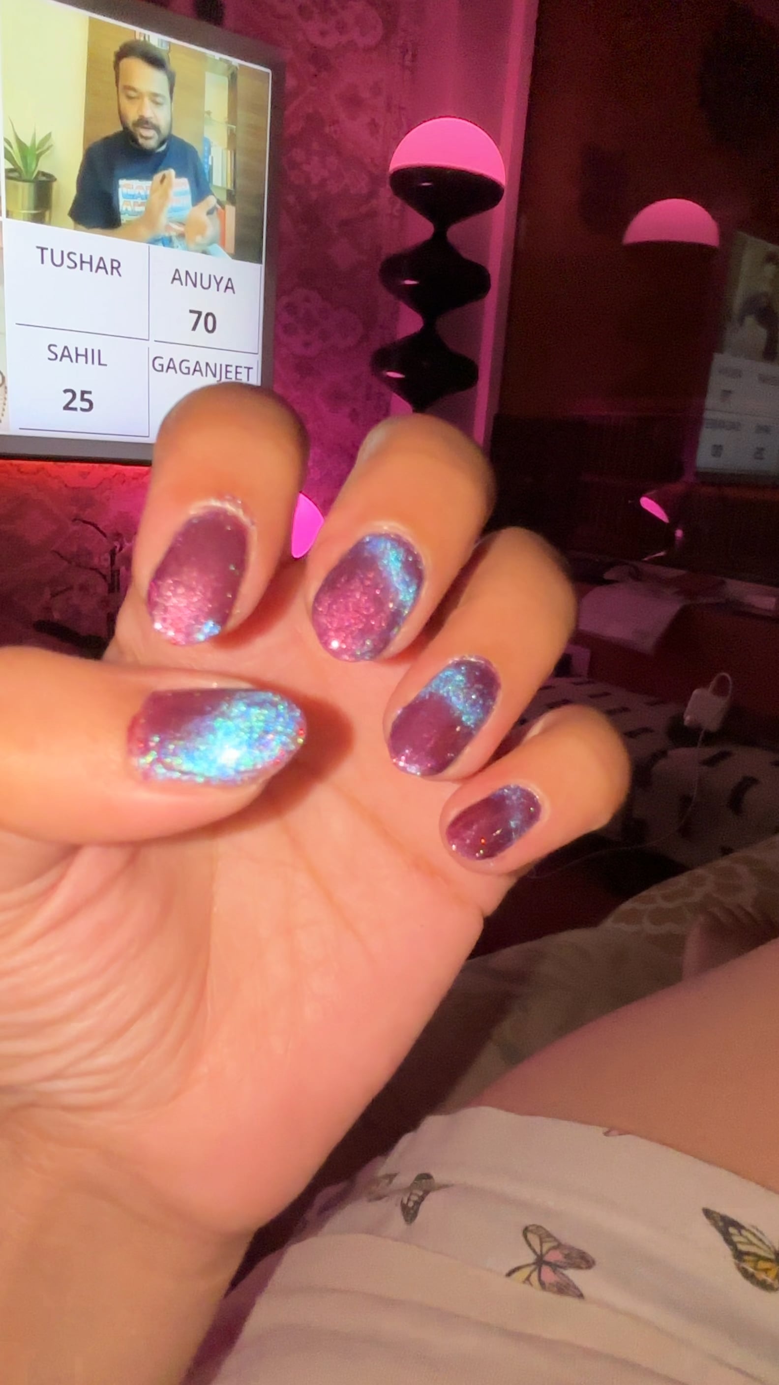 Updated my old mani if ILNP velveteen layered with Starrily sparkler + seche vite.