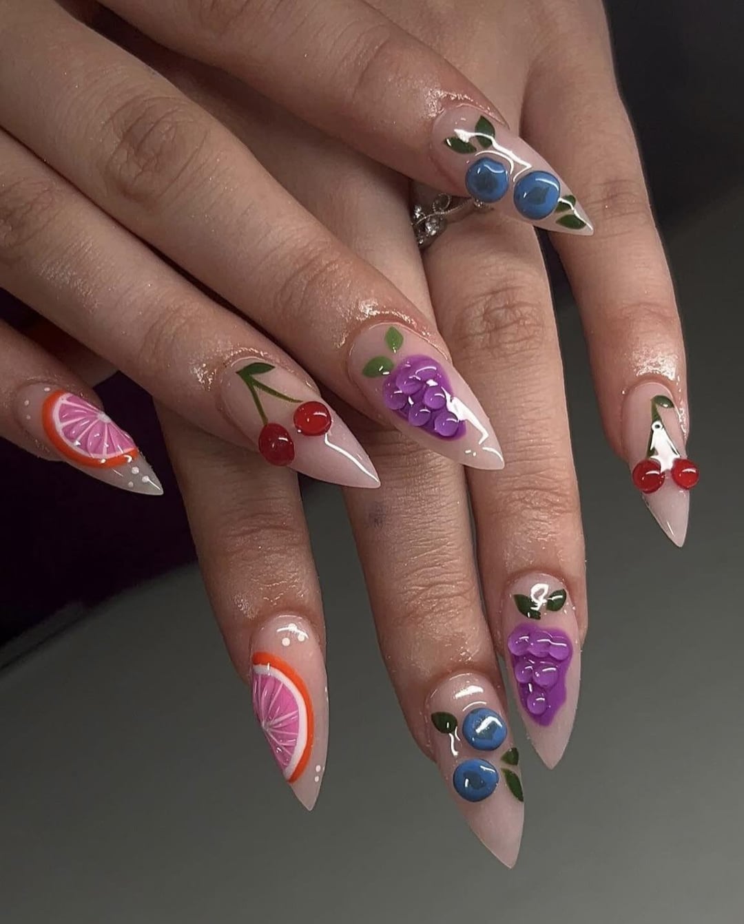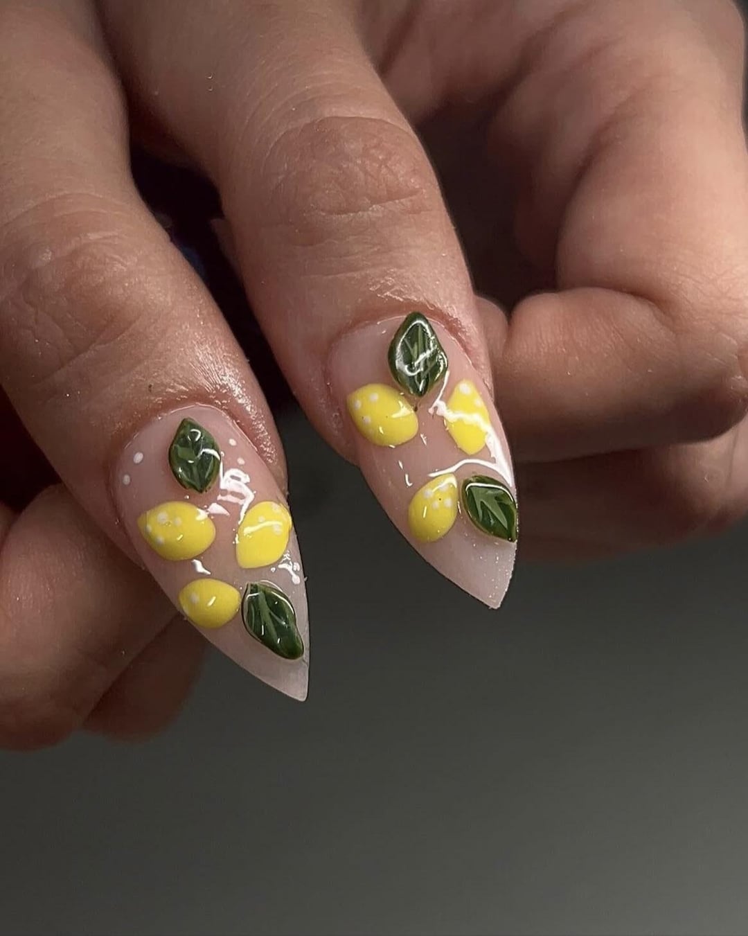I got tired of last minute walk in’s so I finally decided to bite the bullet and start booking with a nail tech. Great vibes, didn’t cut My cuticles once (a problem everywhere else I’ve been), and came up with these super cute fruit nails with Me! The thumbs are definitely My favorite, the highlight on the leaves are you kidding Me?!