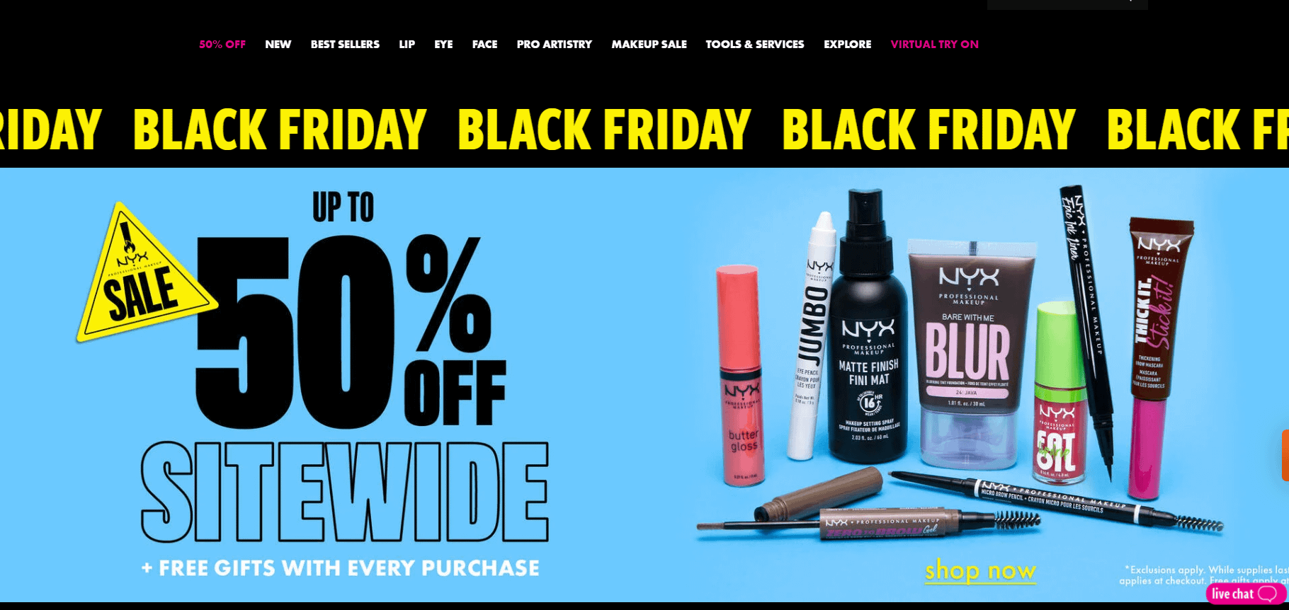 NYX Black Friday Sale Up To 50% OFF Sitewide + Free Gifts with Every Purchase.
