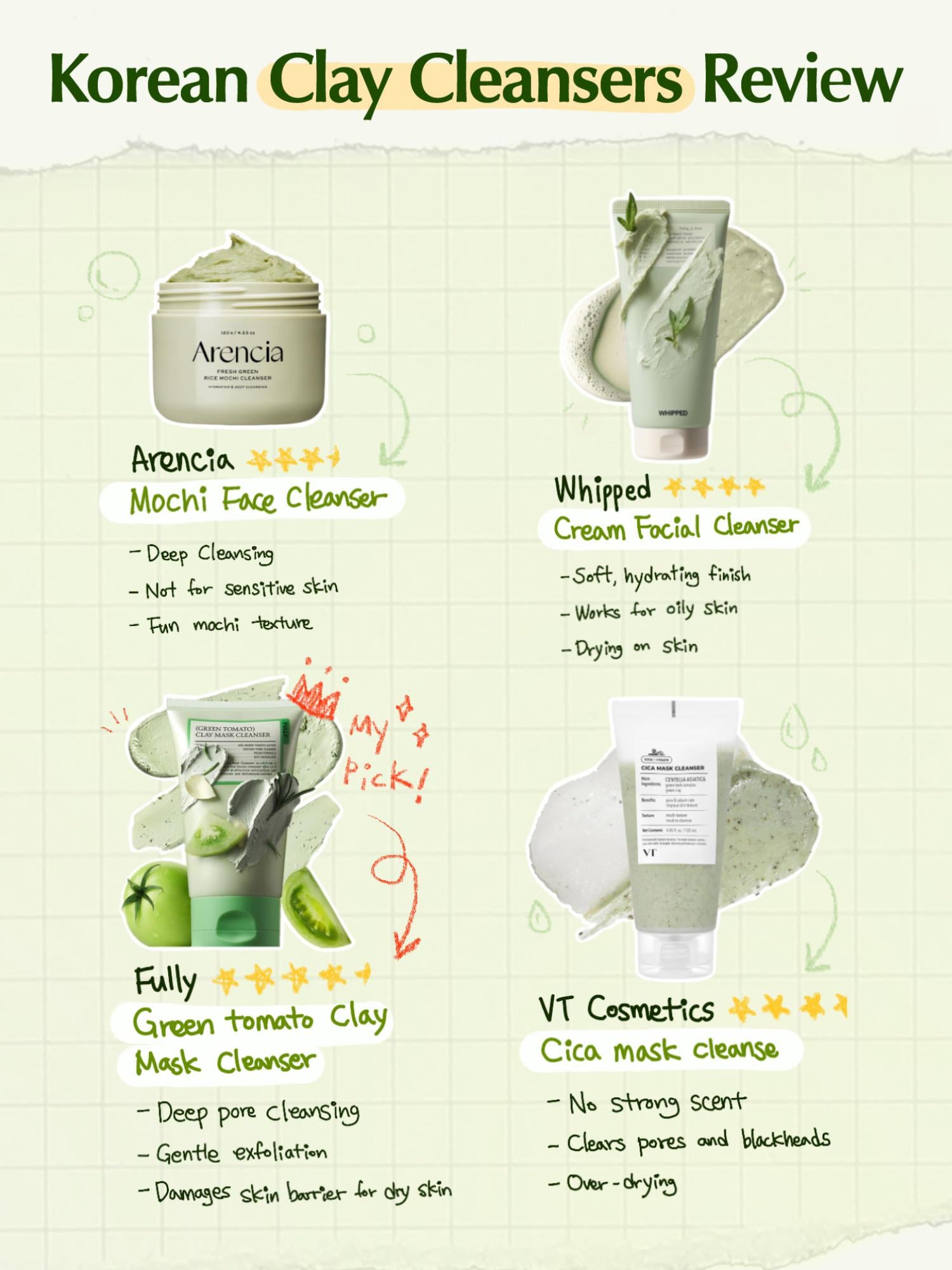 My personal pick is the Fully Green Tomato Clay Cleanser. It gave the most satisfying results by visibly clearing out sebum right after washing.
