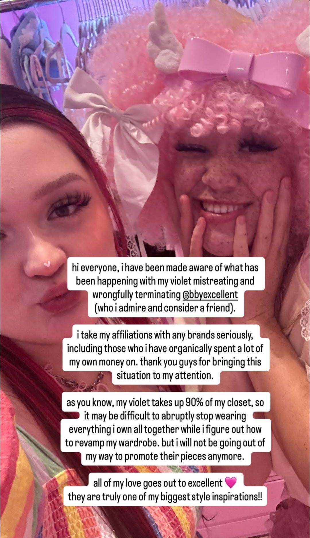 @sailorsappho on IG has posted some recordings of @bbyexcellent's live where they explained what happened. It looks like My Violet is deleting bad comments on IG, because none of their recent posts have any.