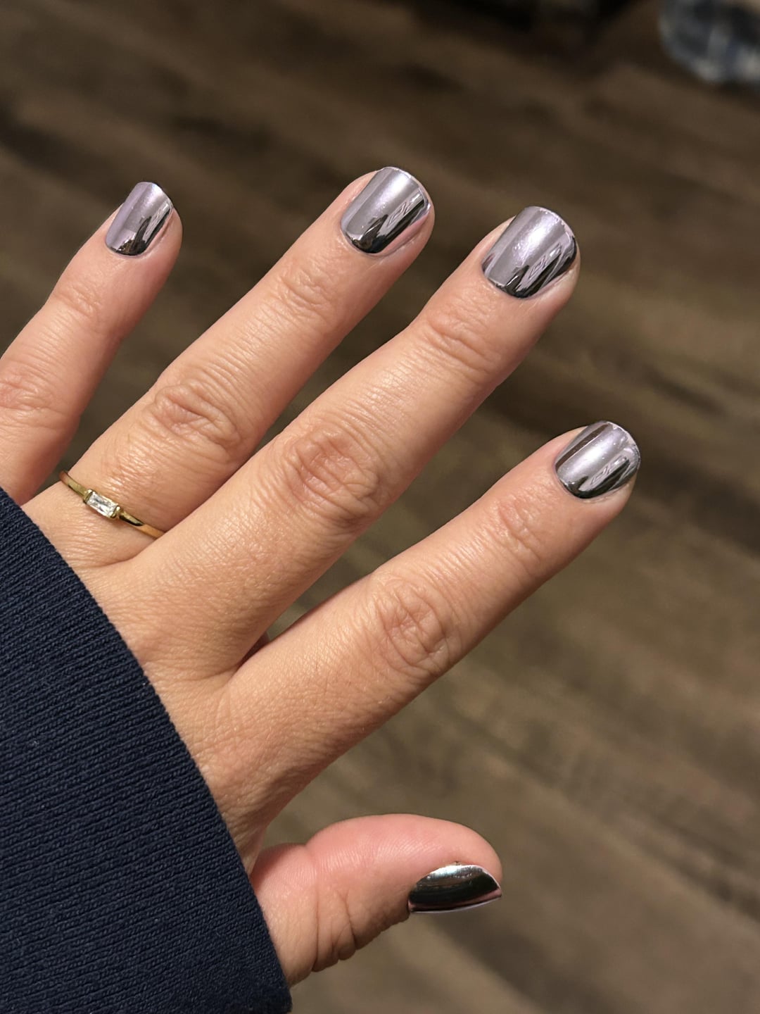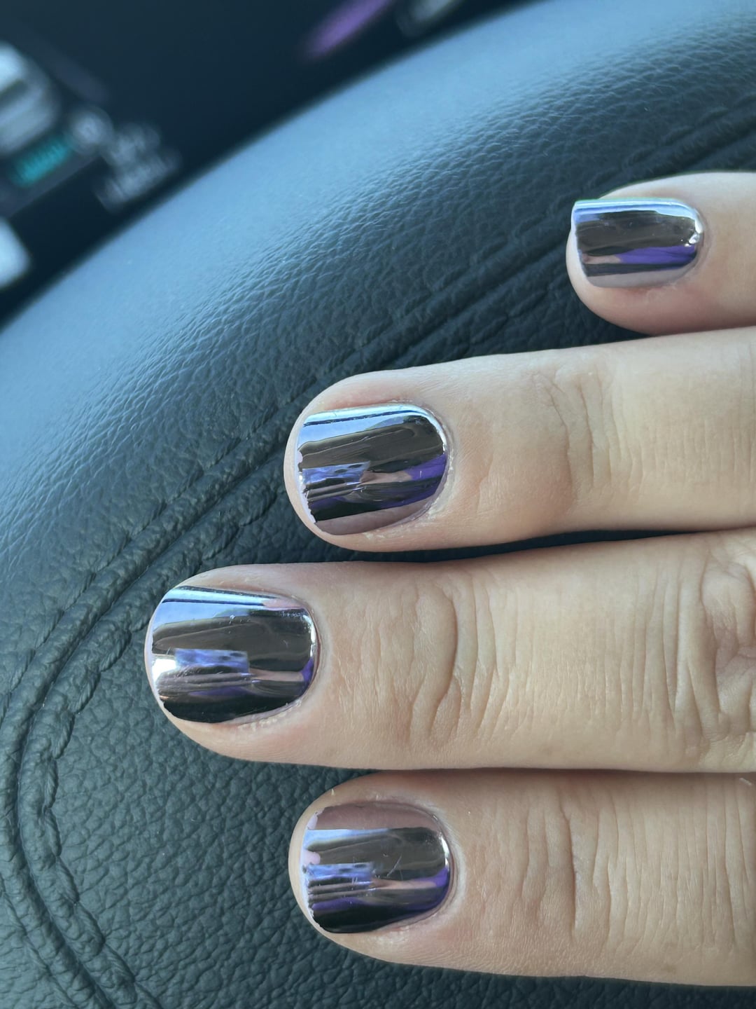 Lilac Steel by Glamnetic! At first I loved it! Even the length was cute because I loved the purple chrome of this set!