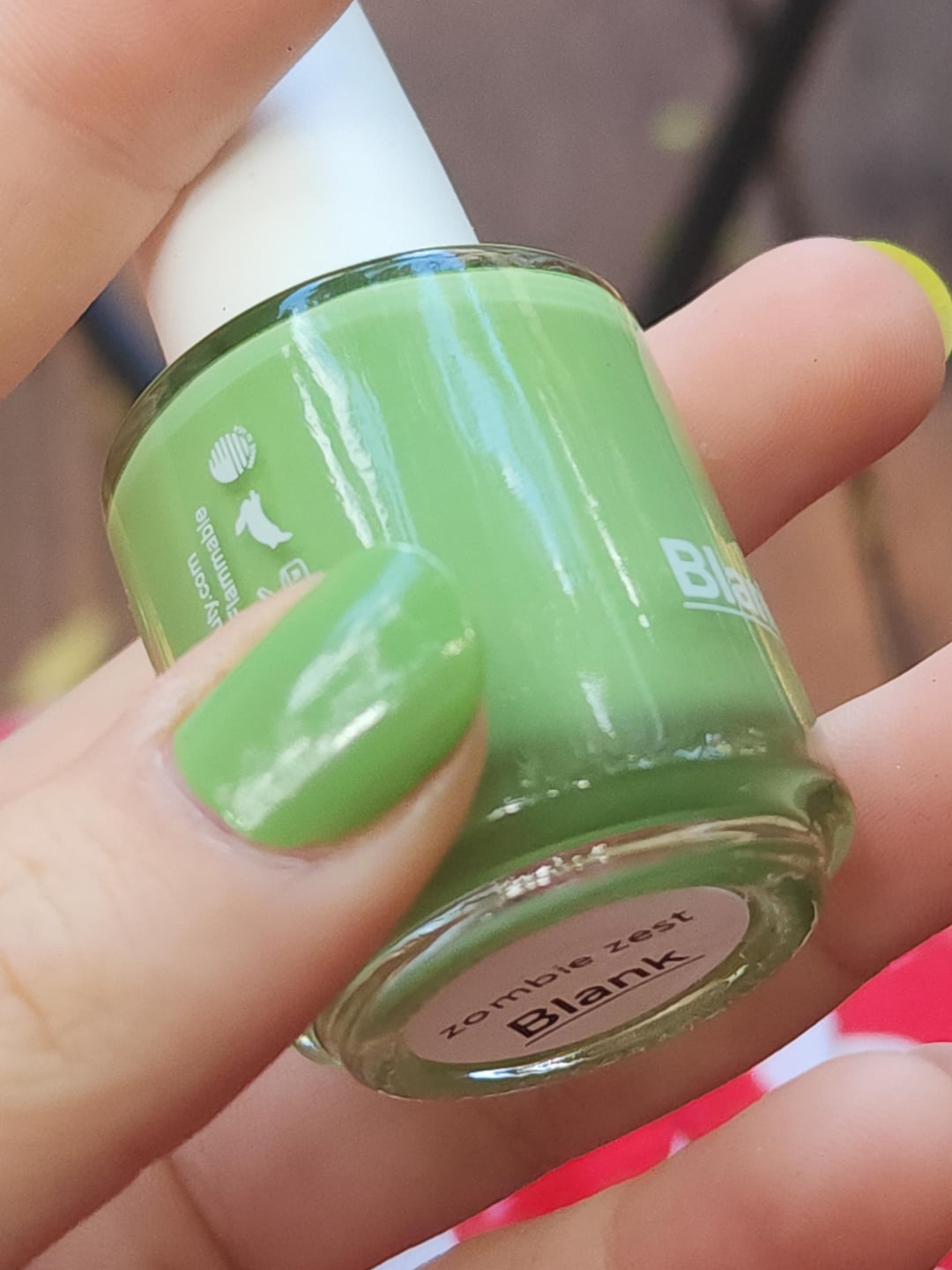 This is a review of three polishes I just received from u/_blankbeauty . Not as a sponsor thing, I ordered them like a big girl. I ordered one color they already offered (Zombie Zest), one custom color to try it out, and got an additional mystery polish for filling out a short website review.