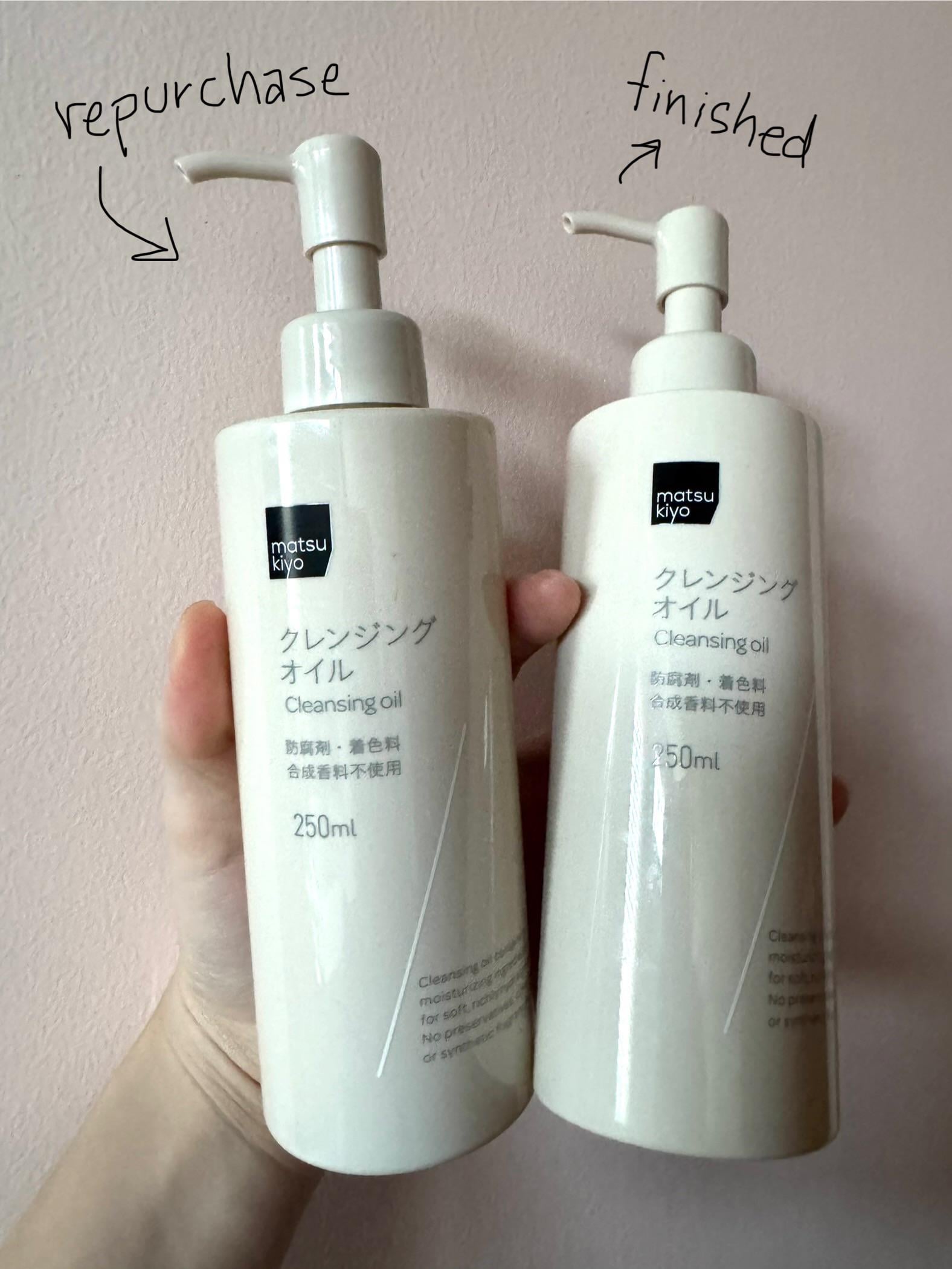 Matsukiyo Cleansing Oil 250ml – HIGHLY RECOMMEND. Full price, this was 159 THB or $5 USD or 725 JPY. I can’t even remember who put me onto this but definitely an influencer on youtube otherwise I wouldn’t have bought it myself. It’s clear. A thick oil. Has a bit of an herbal scent in a good way. Washes makeup and waterproof eye makeup off very easily. The thickness of the oil is actually good because if it was more fluid, it would get in my eyes as I rub off eyeliner. But because this was thicker, it didn’t ‘flow’ into my eyes easily. No eye stinging. I wash it off in the shower with running water. (My friend washes her face at the sink and she says it kinda does sting her eyes a bit.) I use two pumps for a full face of makeup and that is plenty. One pump for only sunscreen days. I was able to get about 70 uses (of two pumps per time) for the bottle. So that’s about a little over 2 months. I haven’t been able to allow myself to try other cleansing oils because this is basically at least half the price of any of the other recommended ones out there. And I’m really trying to save as much as I can with the current global economy, lol.