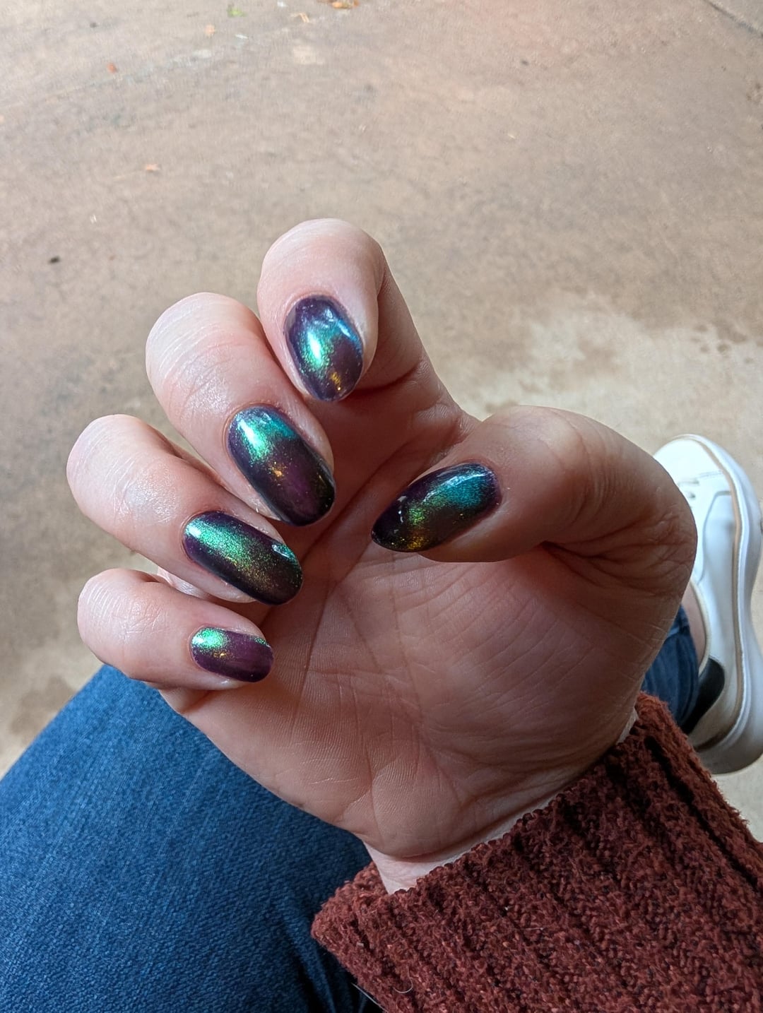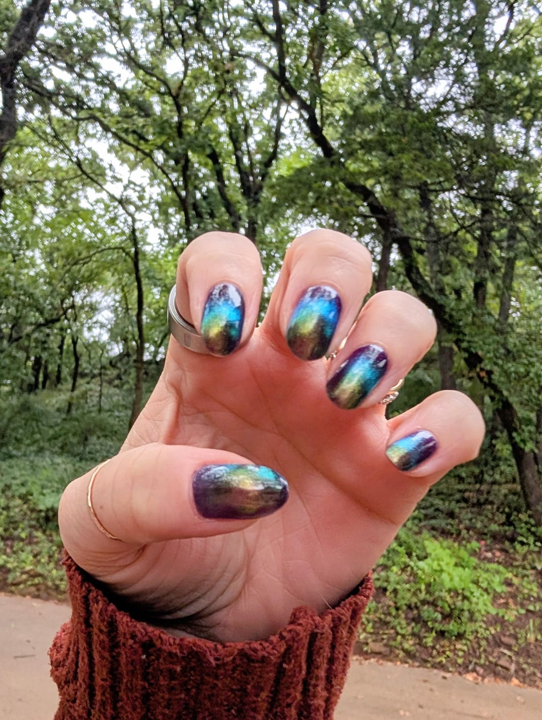 I almost didn't pick it up, but caved because of the name and I'm soooo glad I did. It's so fun and ominous. Totally different colors depending on the lighting, but I think I finally captured them in this first pic! 🙏