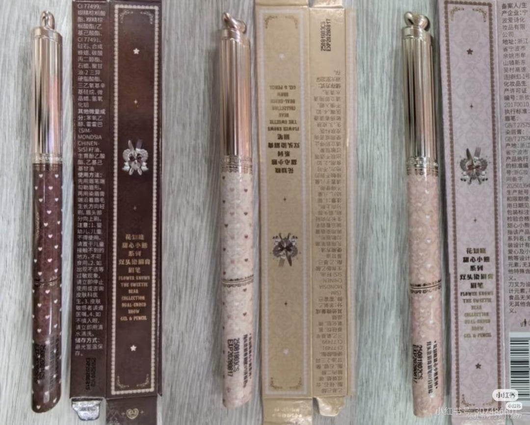 🍯 3 dual-end brow gel + mascara ; 01 grey brown { brown } & 02 natural brown { pink } & 03 light brown { white }