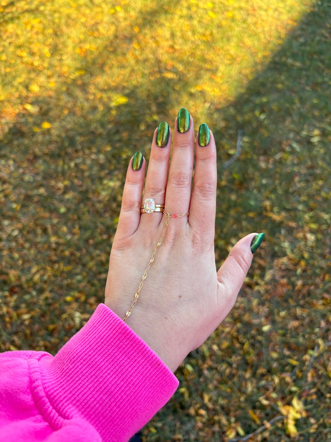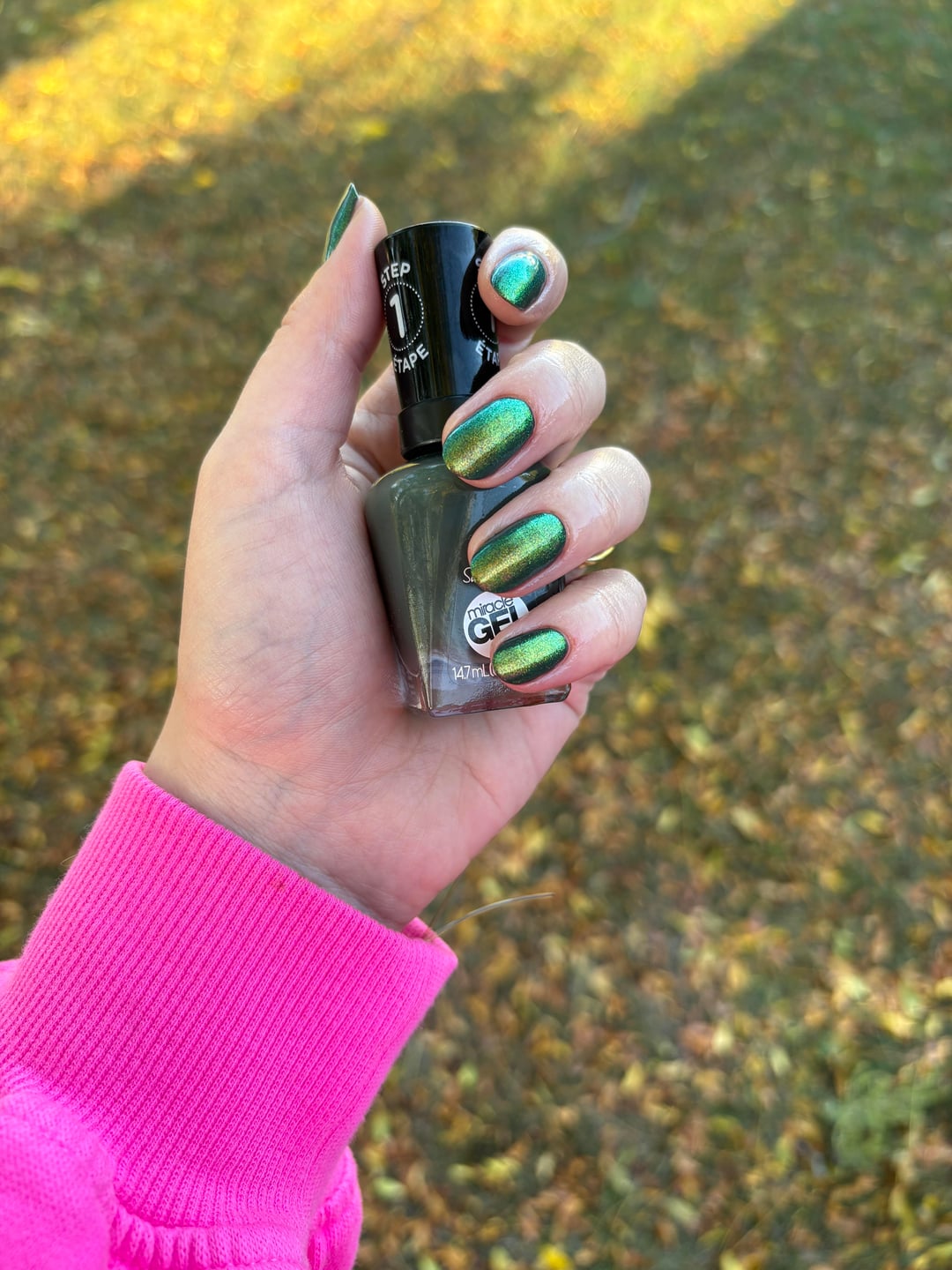 I did really enjoy the burnt orange last week, but trying the topper over green this week 🍂 Base: nothing Colour: Sally Hansen Leaf Me Be Top: Sally Hansen Unicorn by whataloadofcrop