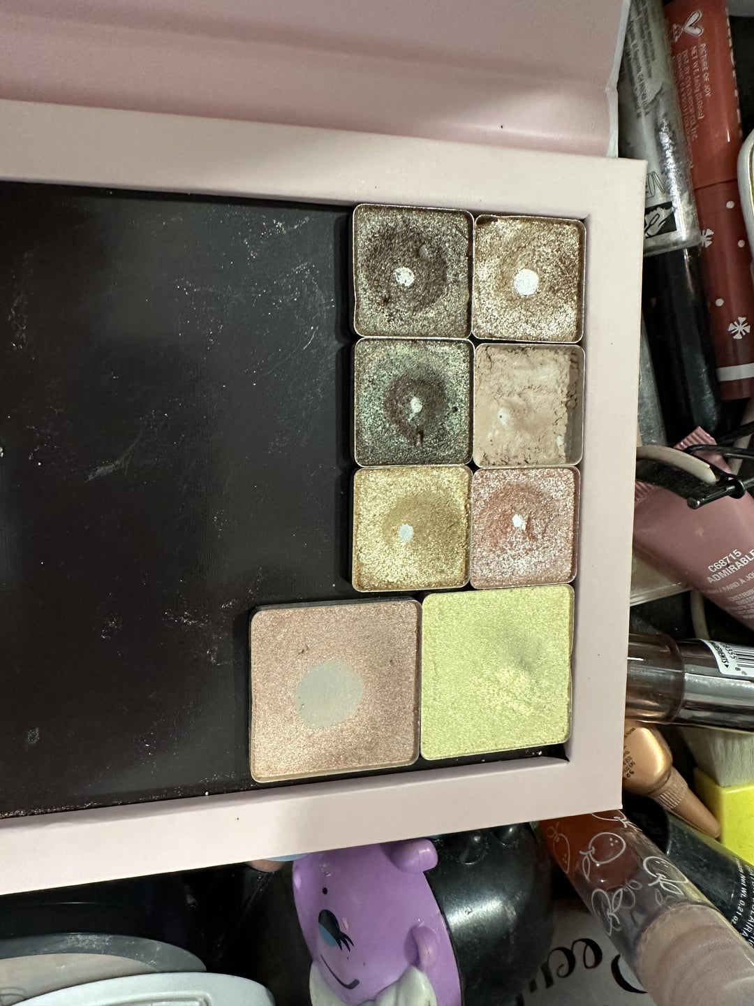 Before is how my Bh Cosmetics Oasis palette and the after is my favorites depotted. Doing this since I have this z palette with other stuff that wasn’t getting enough love. by stitchisbluee