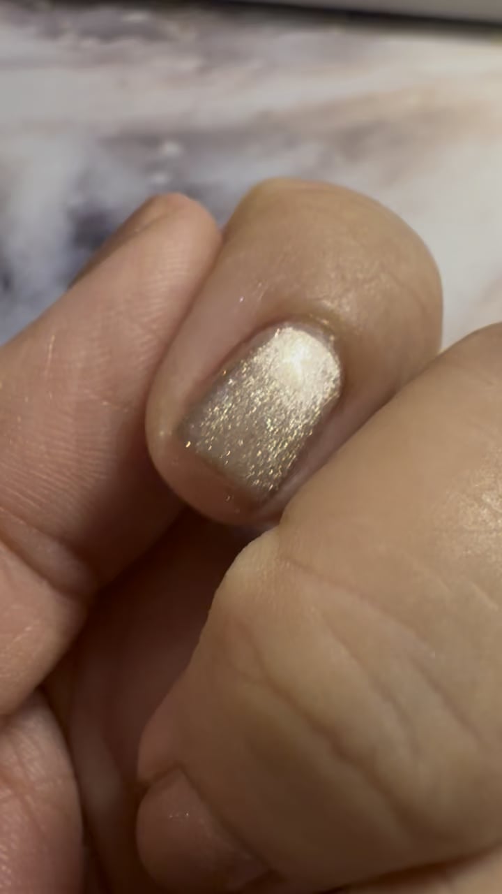 Essie “To The Rescue” as primer, Essie “First Base” base coat, 2x ILNP “Teddy”, 22 lb. horseshoe magnet, 1x Essie Gel Couture matte topcoat. (Index finger has no topcoat for comparison purposes.)