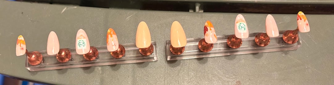 These are so much worse than anyone else on this thread haha but I'm not a nail tech and do them myself. I included inspo pics at the end, and I'm pretty happy with them, especially the thumbs☺️ it's also only my second time doing any full set of nails and they took me sooo long lol