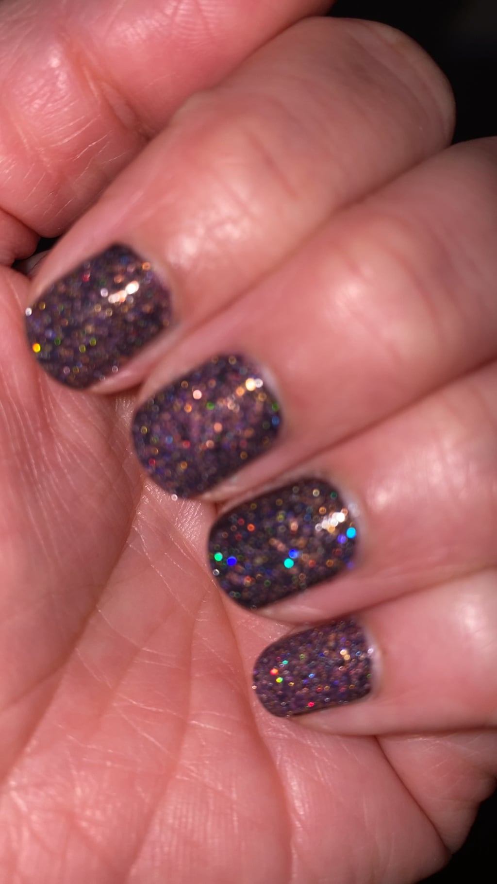 Disco on my nails 🪩 (but only in indoor direct light 😒). Indoor natural light photo in comments. Orly Nailtrition x1 a-England Jane Eyre x1 Painted Polish Where My Ghouls At? x1 Barry M Plumpy Topcoat x1 by Mooncakemits