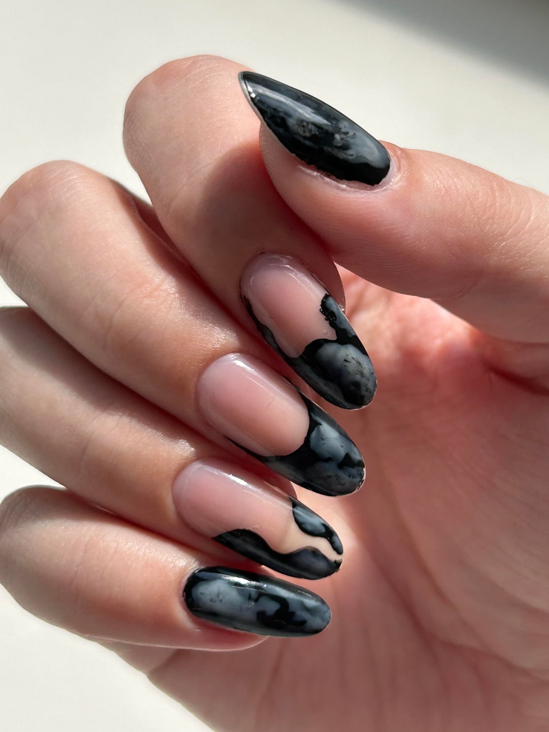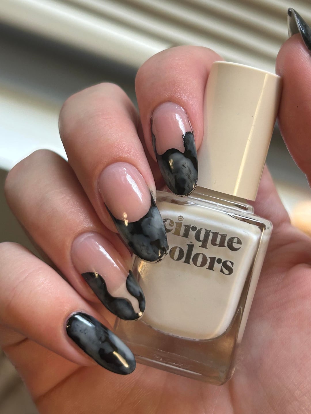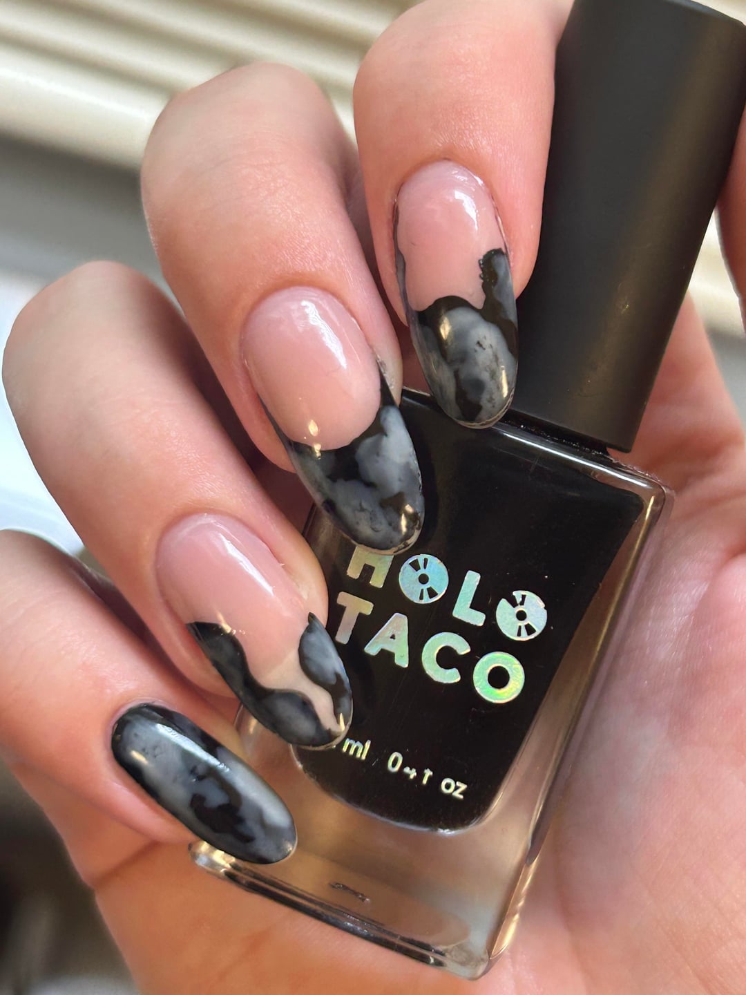Did this a few days ago to start off Halloween season and forgot to take pics (hence the tip wear). Used Holo Taco- one coat black Cirque Colors- linen, rosewater jelly by ResearcherComplete57