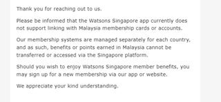 Please be informed that the Watsons Singapore app currently does not support linking with Malaysia membership cards or accounts.