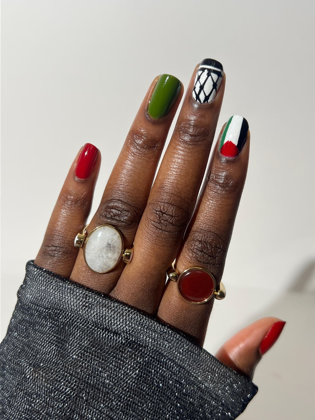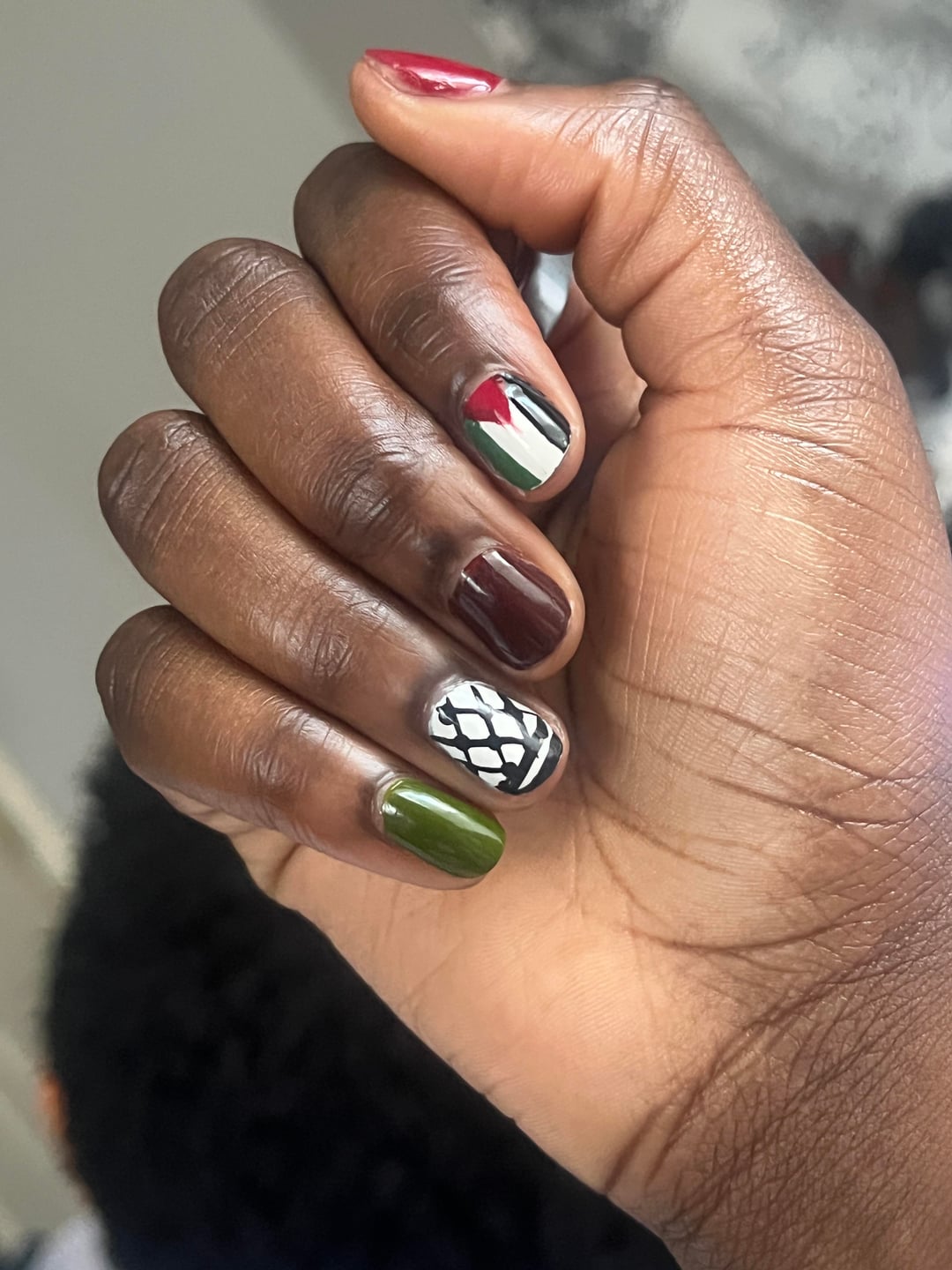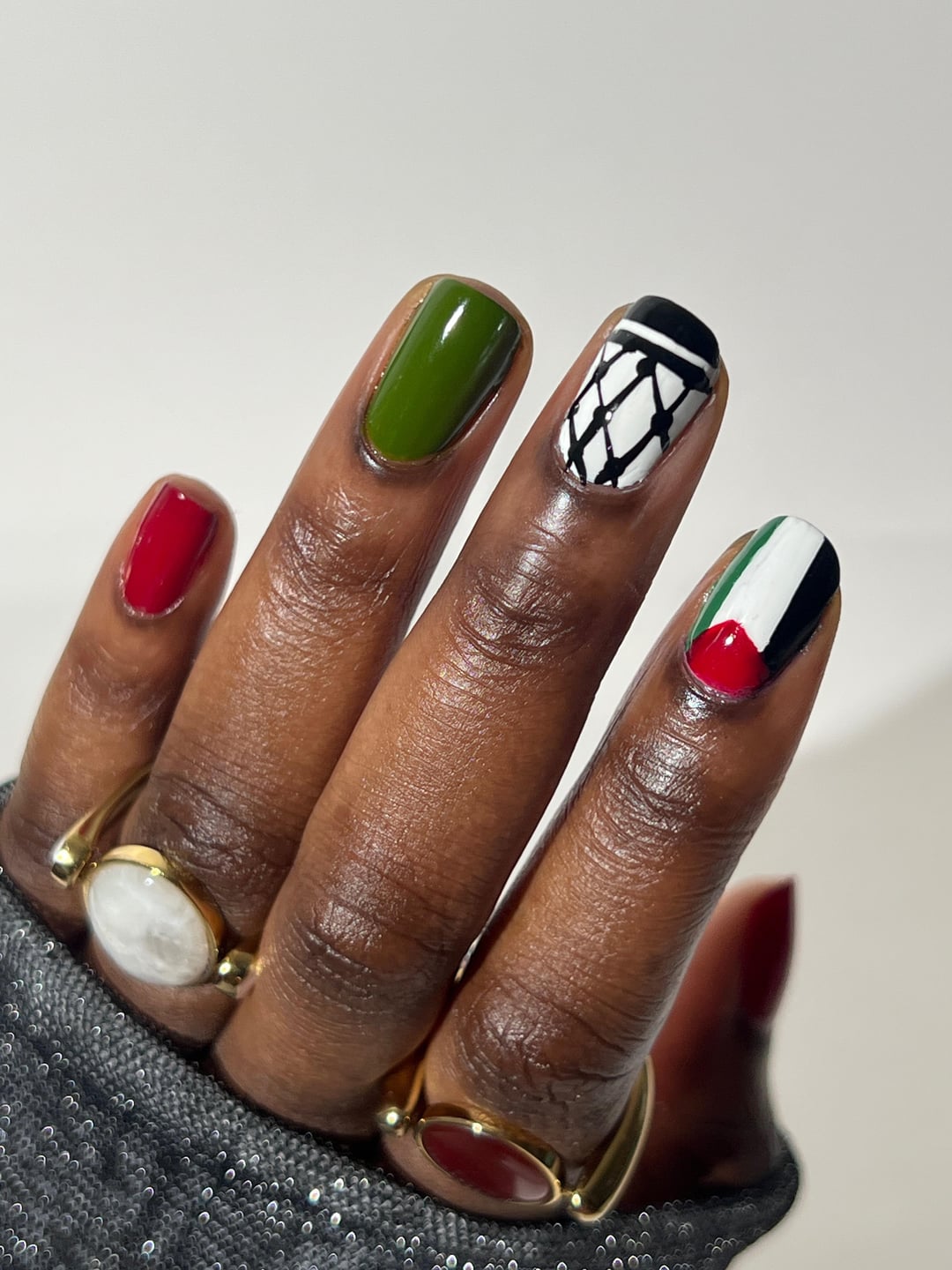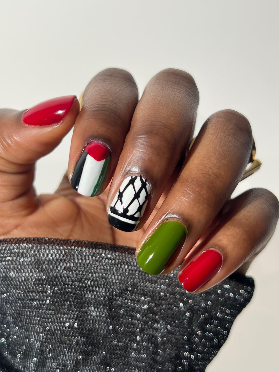 i don’t do nail art often…but posting this as a reminder to speak out against the genocide against palestinians in gaza and continue to pressure your elected officials to stop funding and arming israel