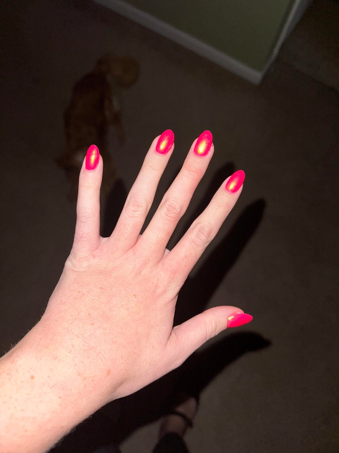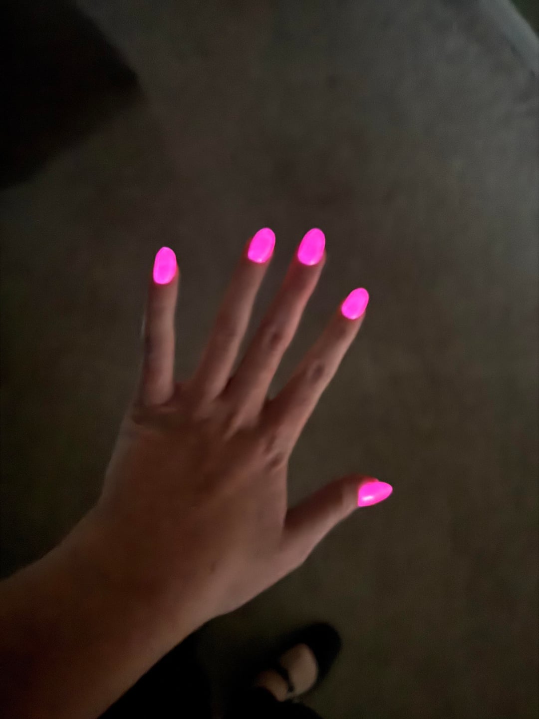 Walked into my dark apartment about 15-20 minutes after getting my nails done and they were literally glowing! This is my first time getting a color this bright so I’m assuming this is normal? Something about the UV light right?!