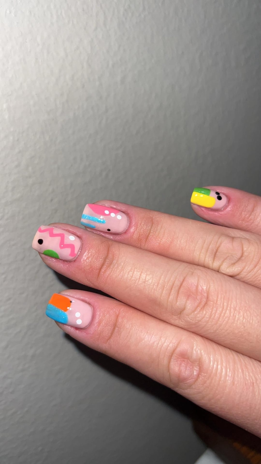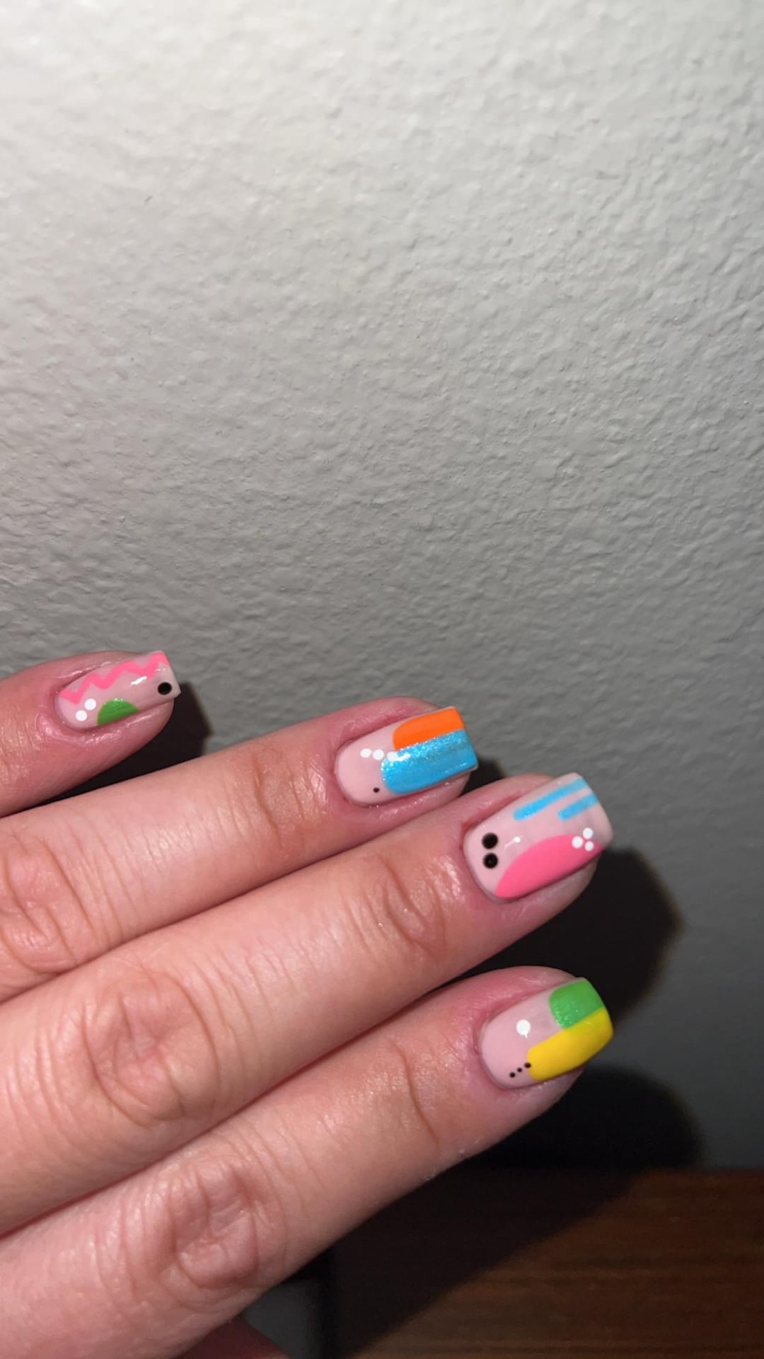 Simple free hand. I’ve had a rough week so I figured I’d finally go back to some bright colors