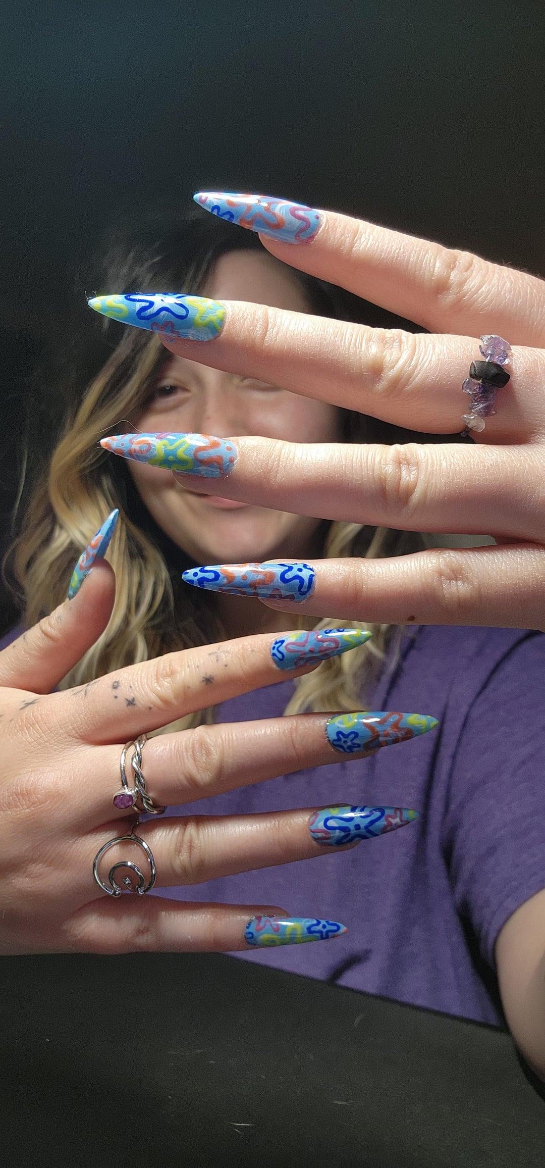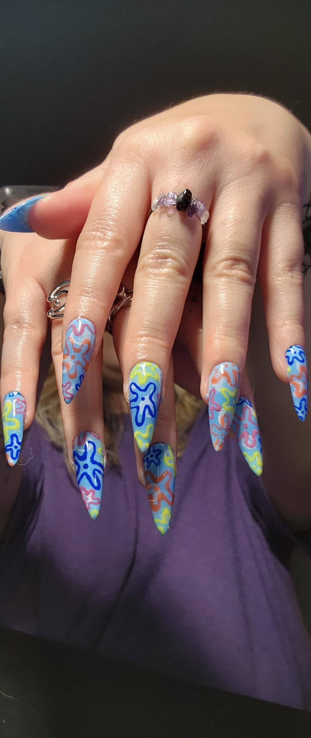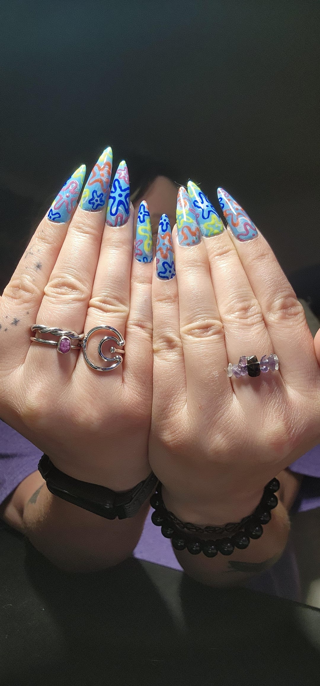 I think this is my favorite nail set of all time. Took a long time to draw everything out, but so worth it