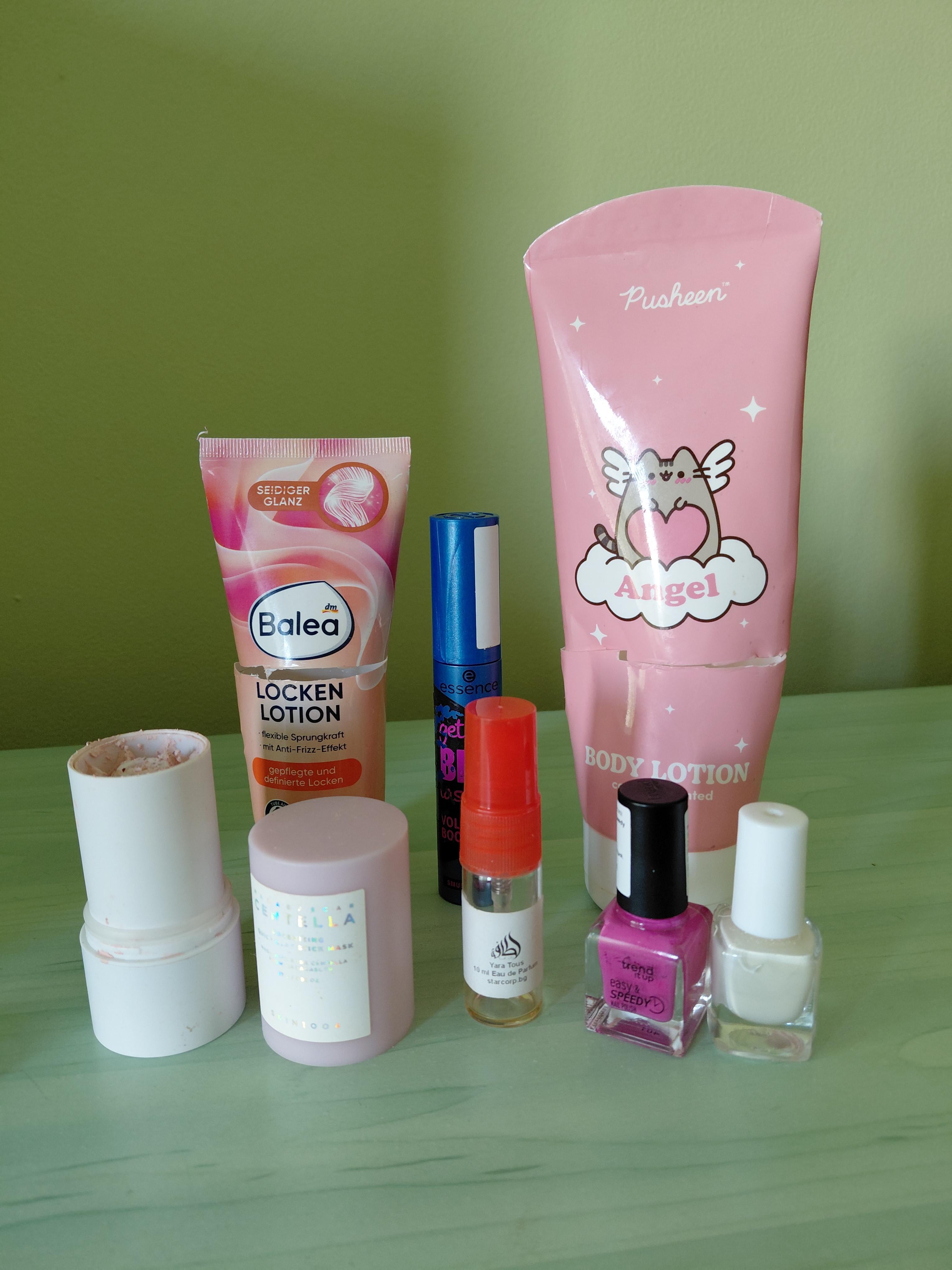 fine-apple22 on October 3, 2025 8:29 am Not so many empties this month, I feel like I will have way more in October! • Skin 1004 Poremizing Quick Clay Stick Mask 27g • Balea Styling Curl Lotion 100 ml • Essence Get Big! Lashes Volumizing Waterproof Mascara 12 ml • Lattafa Yara Tous EDP 10 ml • Sinsay Pusheen Angel Coconut Body Lotion 200 ml • Trend !t Up Easy & Speedy Nail Polish in N220 6 ml • Color Liang Mei Nail Polish in N58 10 ml