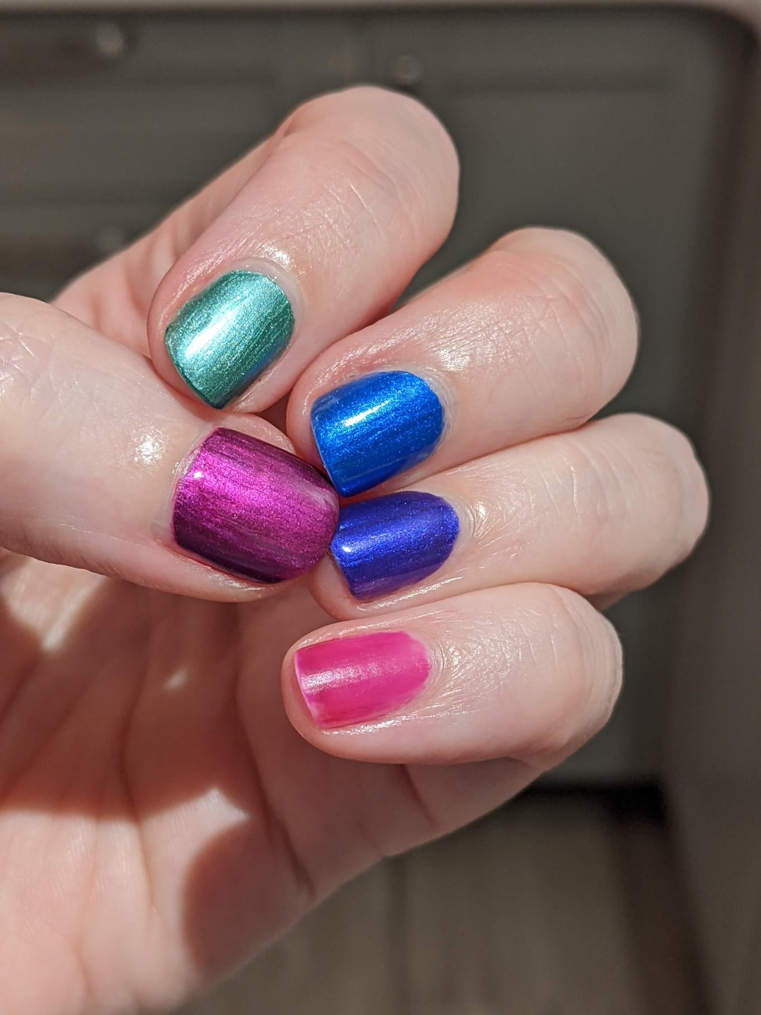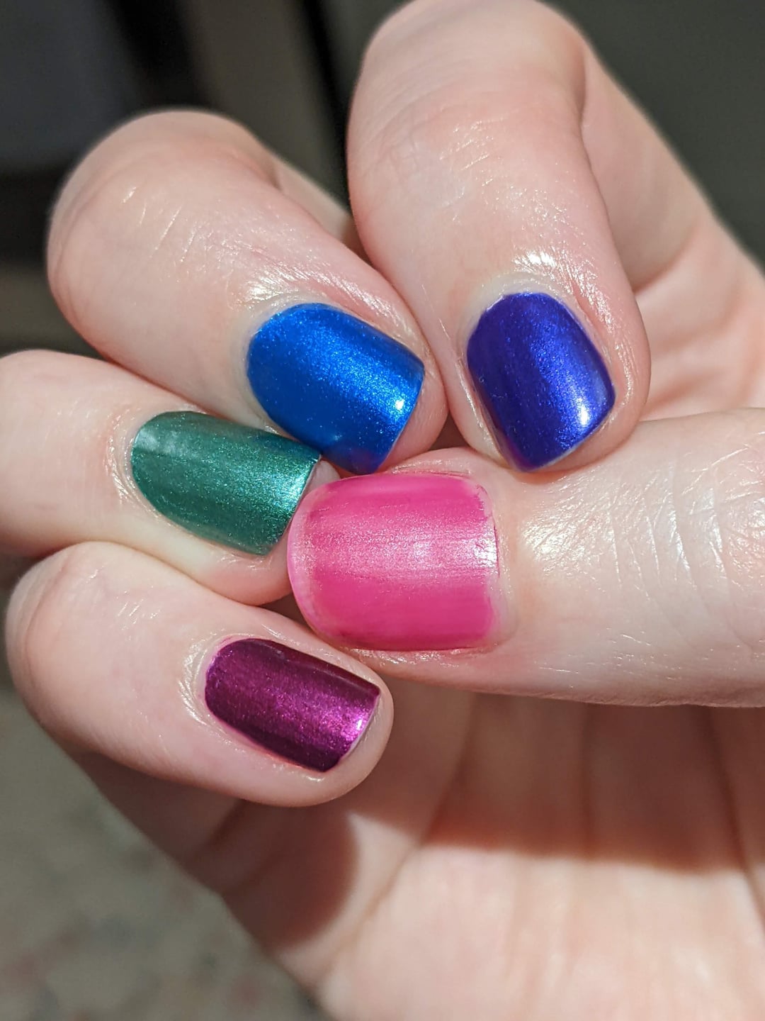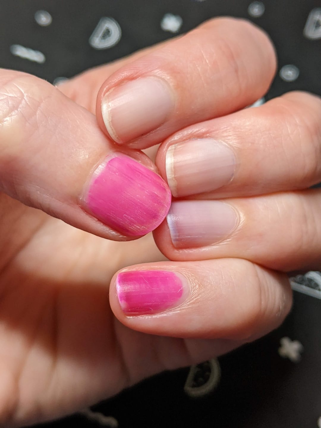 I want to stress that I painted my thumb and pinky the same colour, on both hands.