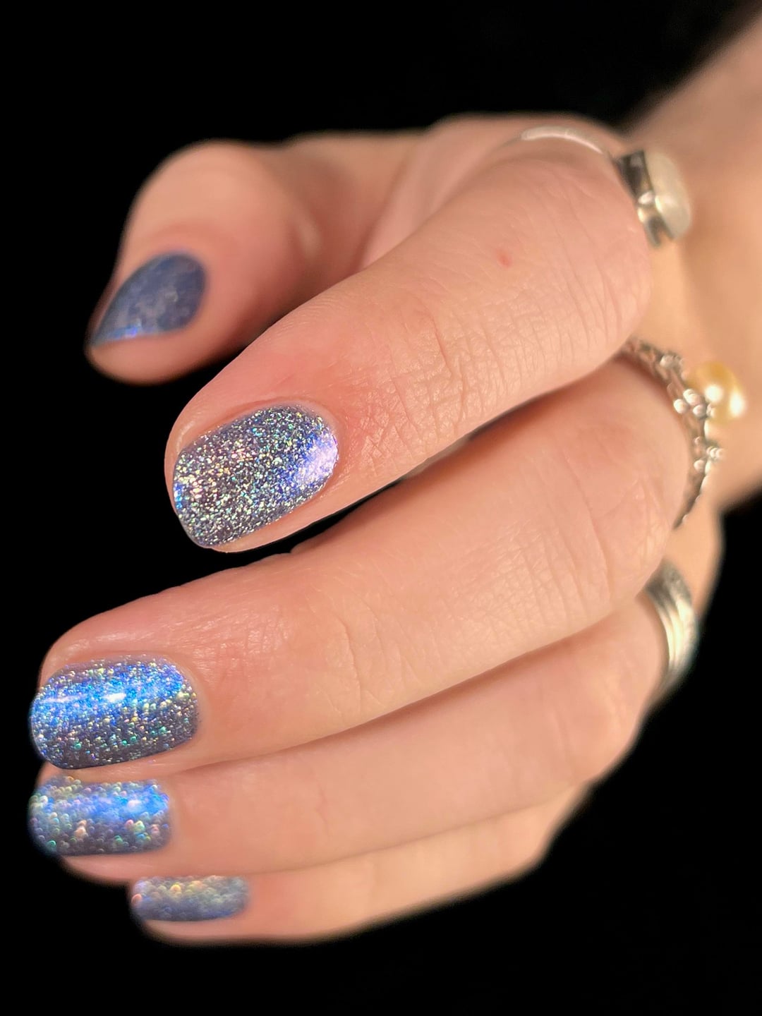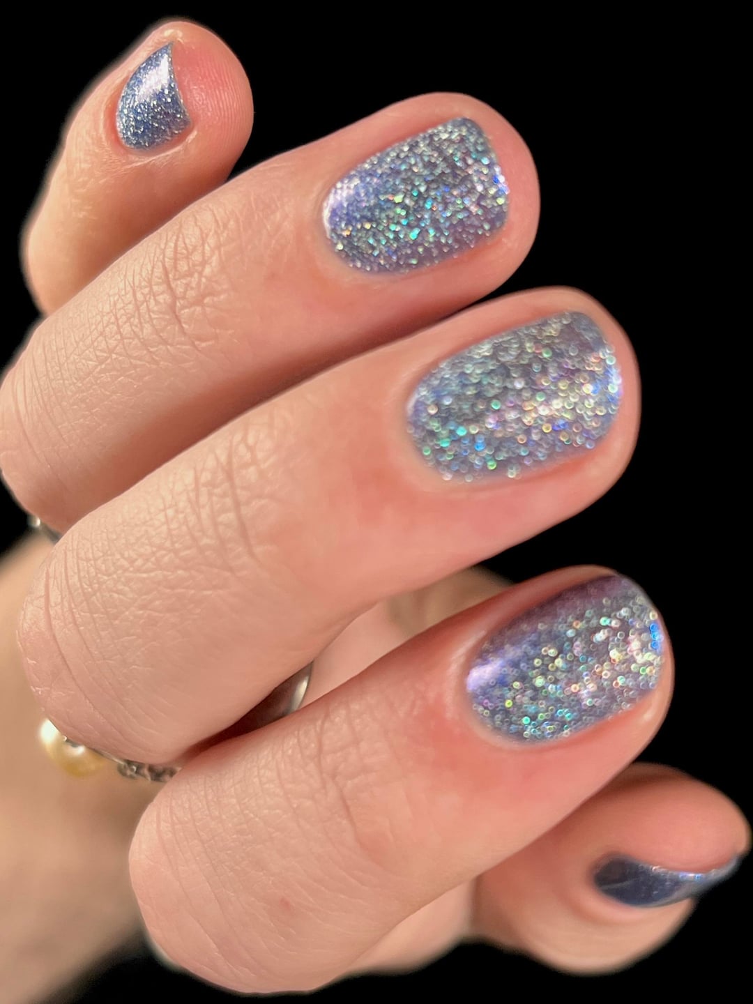 Wearing it here in 3 thin coats. With a glossy top coat. (Also the bkl top coat)