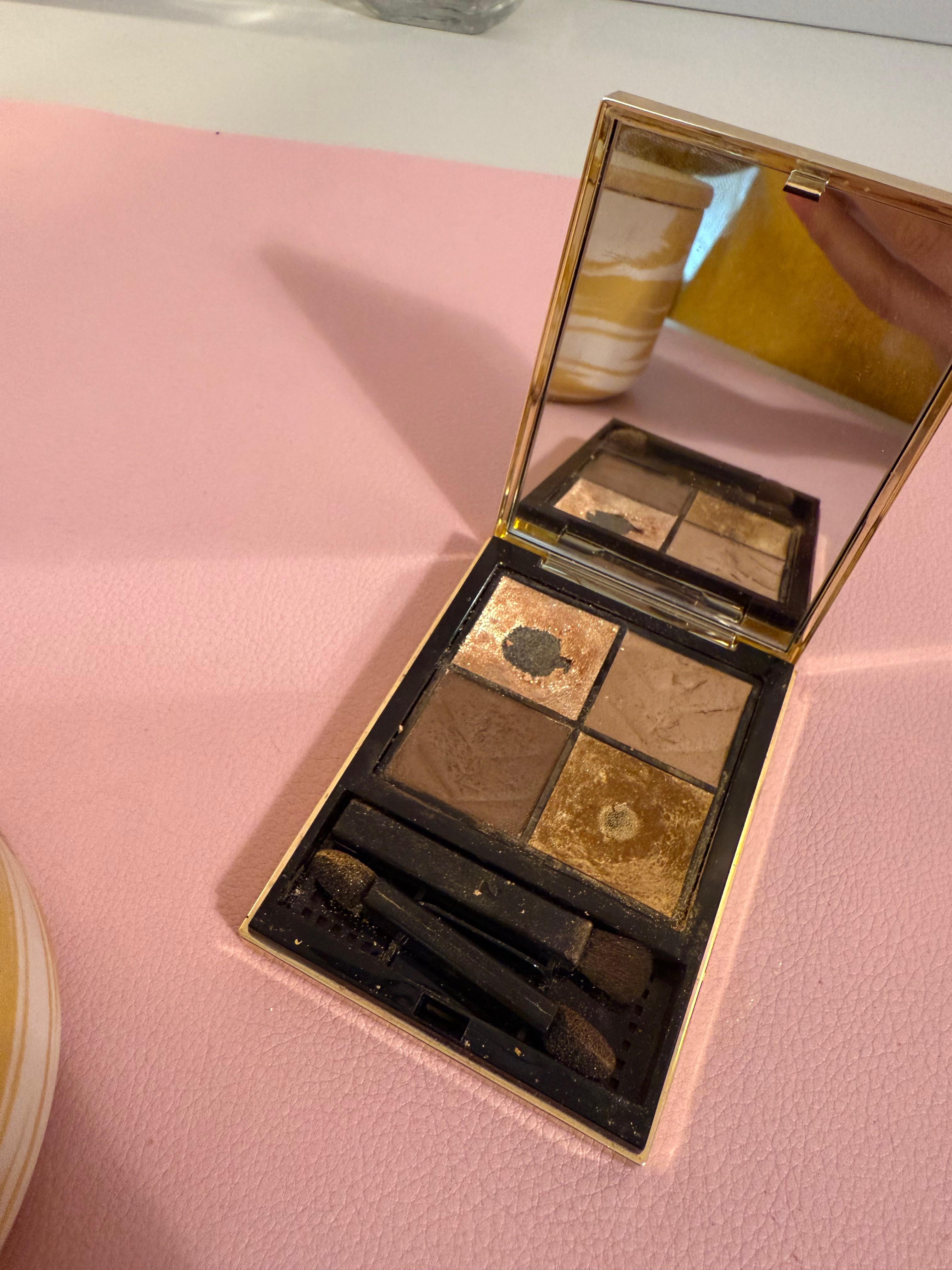 Second pan in the gold metalic color in ysl couture clutch in over dore. It was my main gold lately and gold on the inner half of the lid is my main thing even if I go with a neutral brown on the other half, or a dusty green or purple or just gold and a crease color . The first to hit pan was the shiny topper and today the gold. I probably have matte browns for a lifetime though