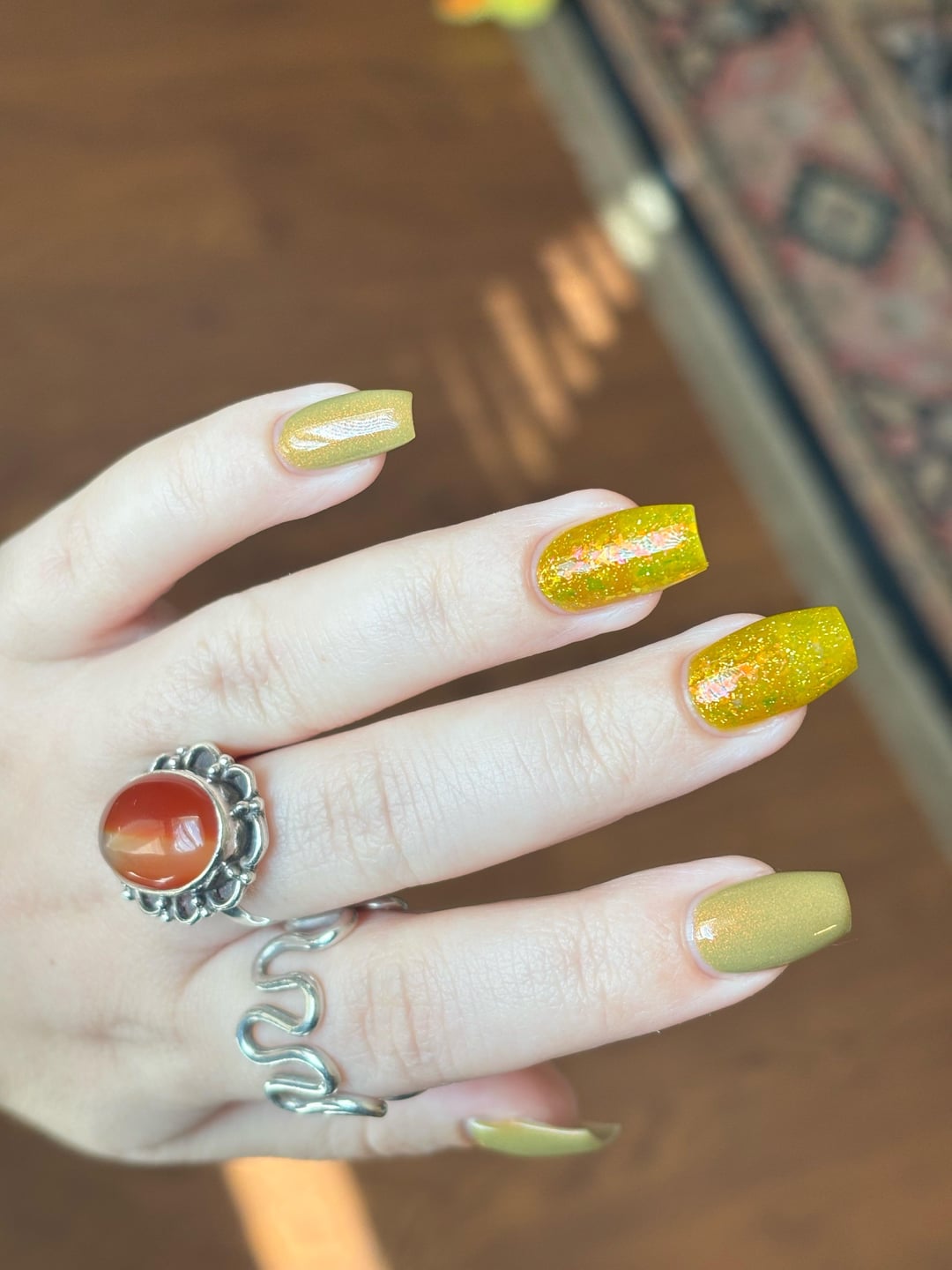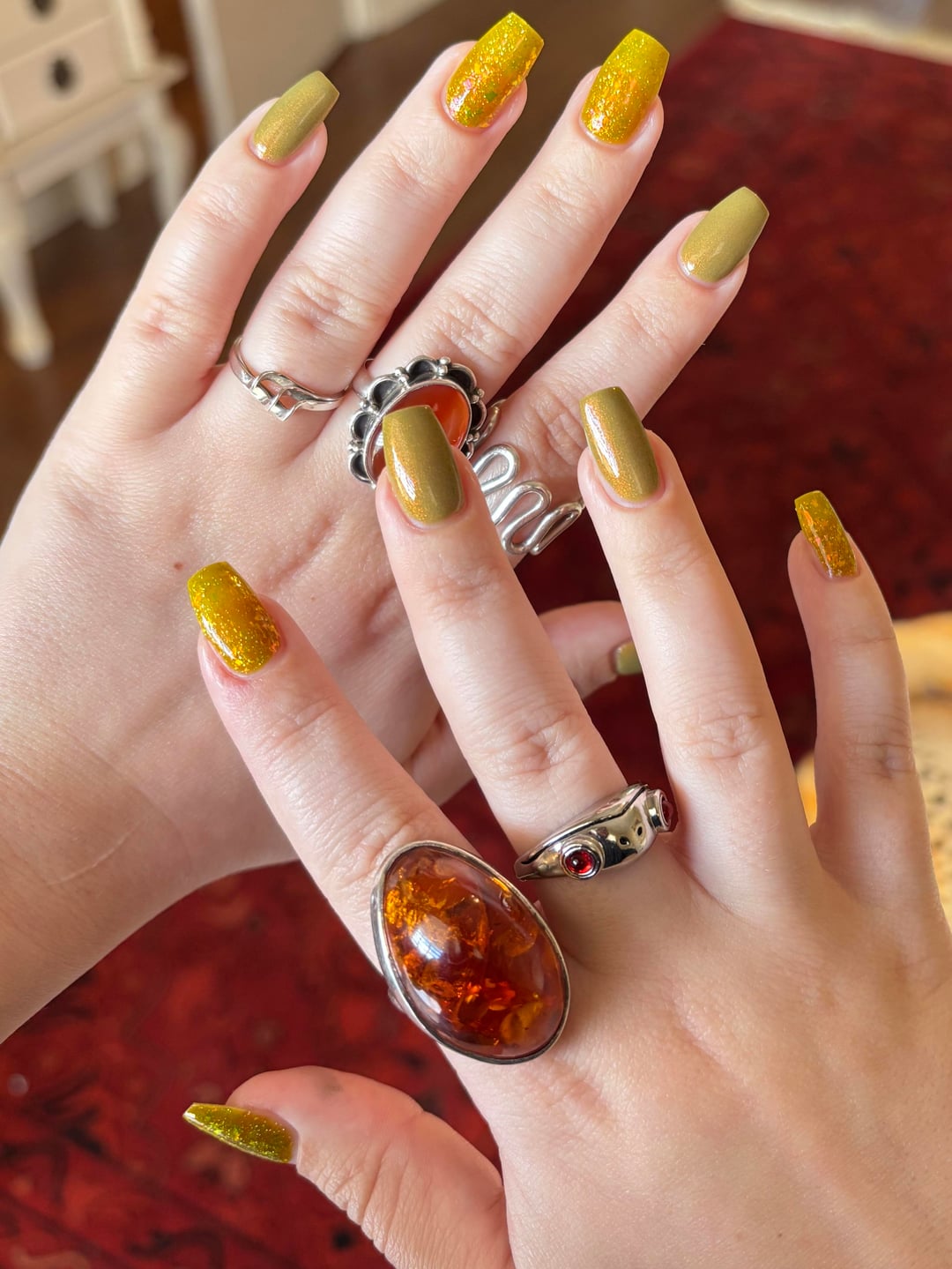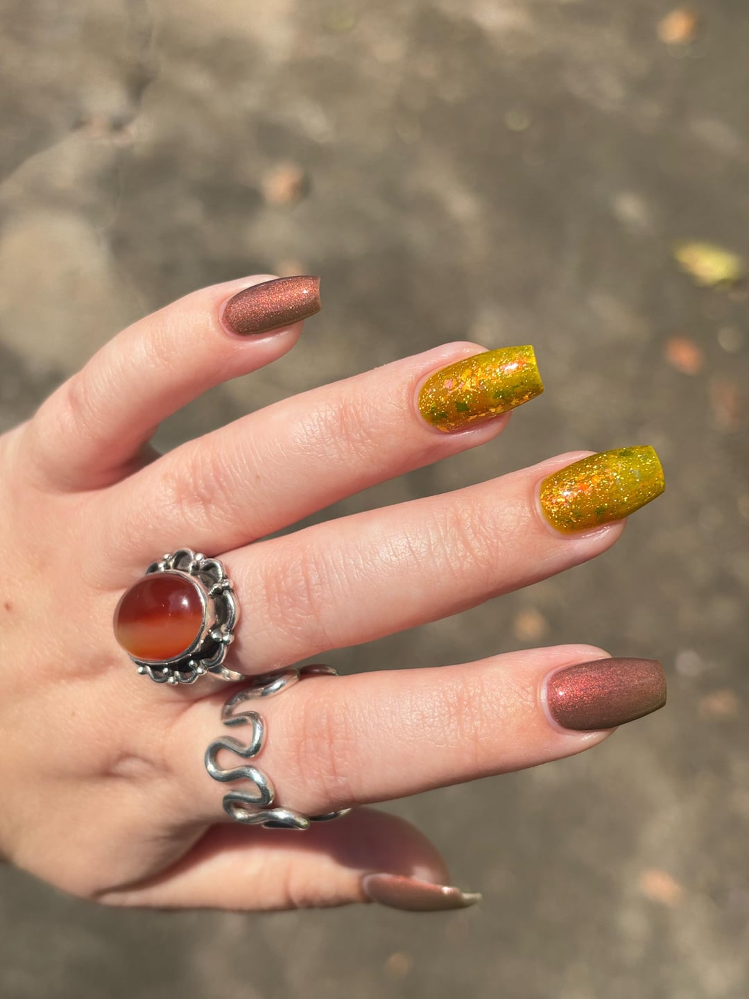 Products: Nailtiques formula 2 base, LynBDesigns “Don’t Stop Beleafing” x2, BCB Lacquers “The Jackal” (Sep 2025 PPU, solar) x2, Glisten & Glow QDTC!