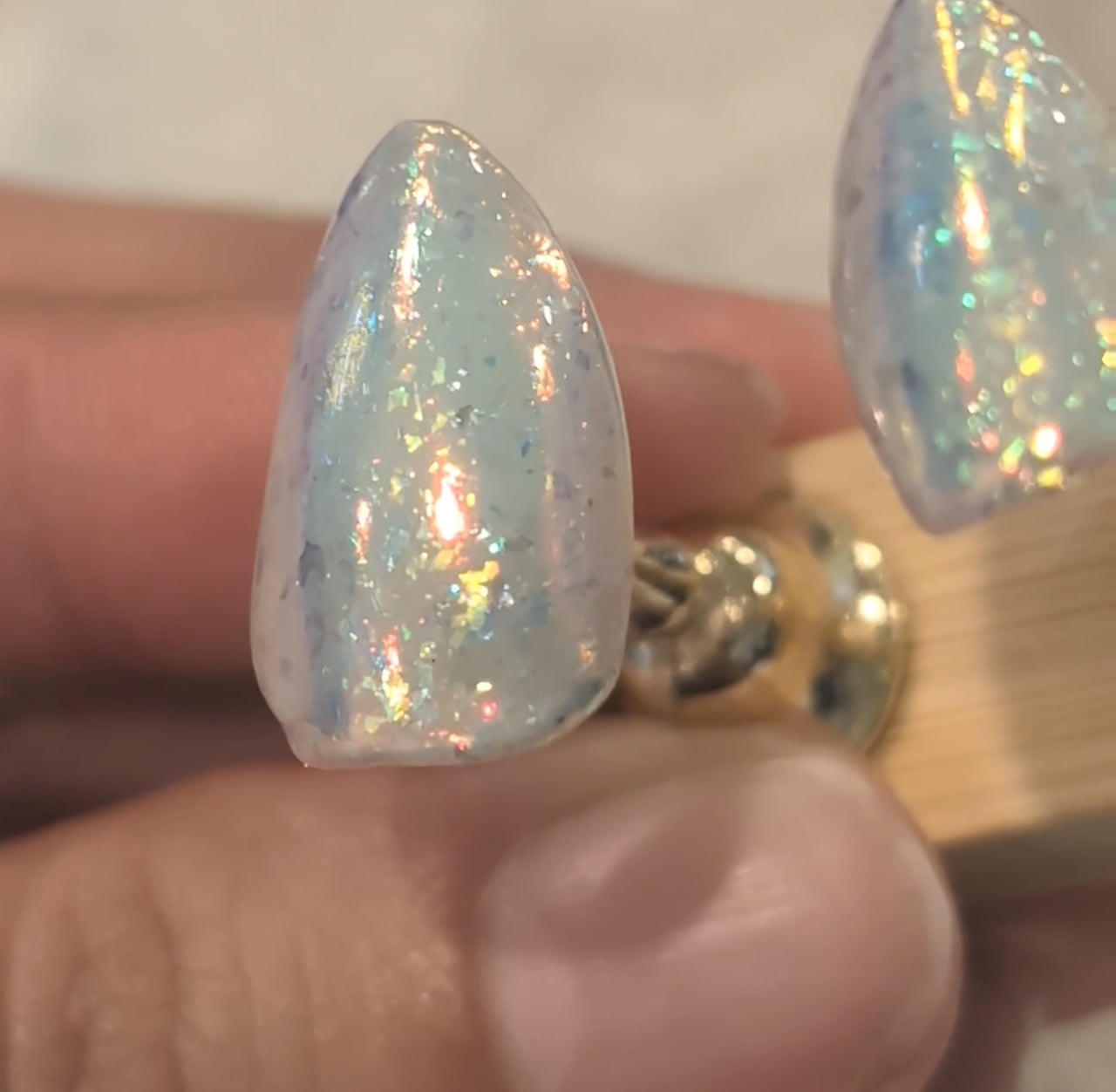 Inspired by a recent post here and a September polish pickup order. Trying my best to emulate opal! The hardest was getting green and red random flashes. I did like 6 prototypes to get to this!