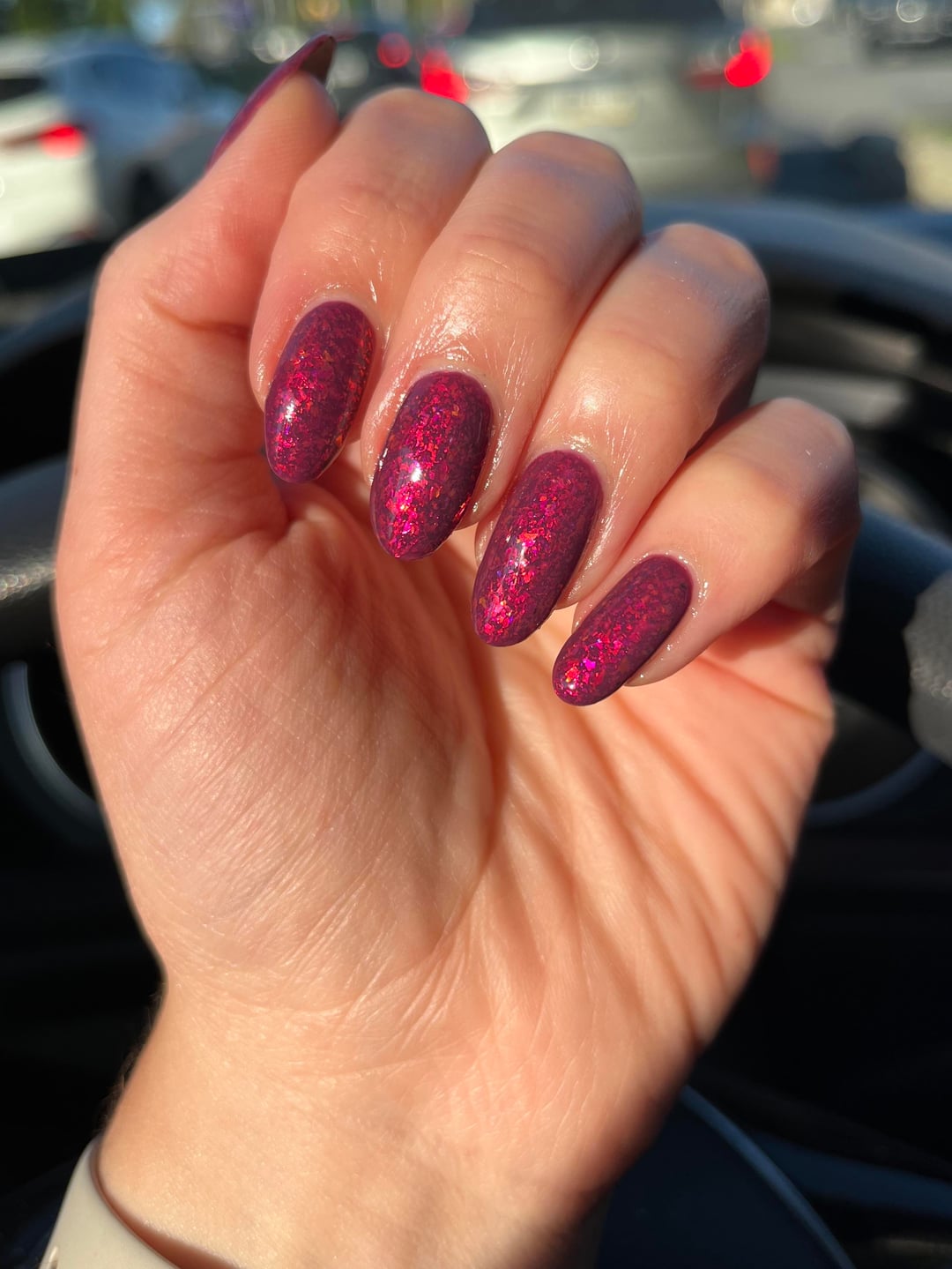 Known_Food1105 on October 4, 2025 6:57 pm Products: Essie to the Rescue; two thick coats of Sugar Beets from Alchemy Lacquers; Essie Gel Couture