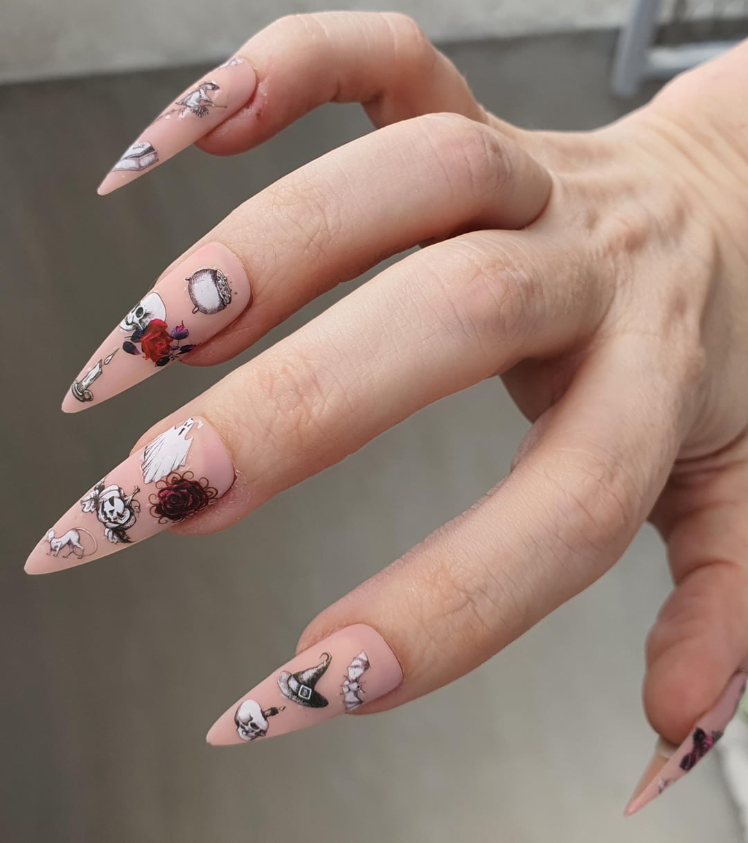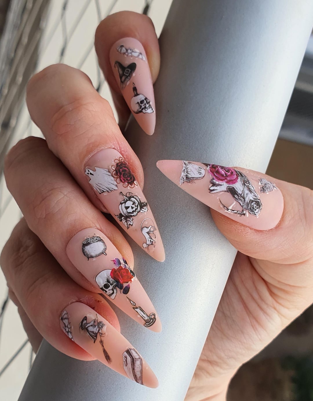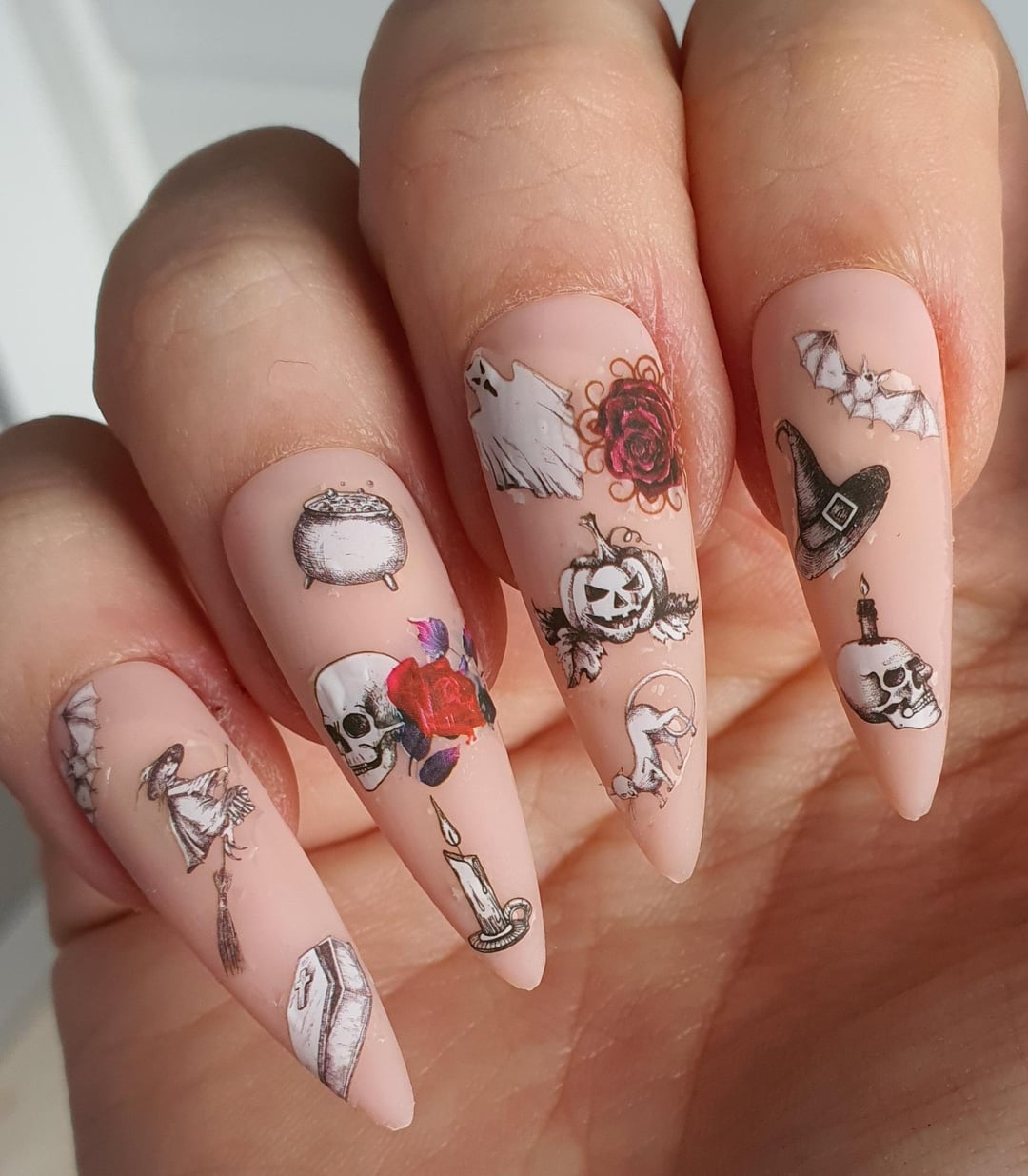 For this set, I used : – nude nail tips – lot of stickers on halloween theme and roses stickers Matte top coat by Key_Opportunity_7082
