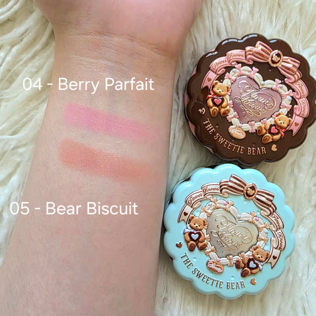 05 BEAR BISCUIT BLUSH: The pigmentation level of this blush is insane. The first time I used it, I applied two layers of it with the Sweetie Bear brush, and that was way too much blush that it ruined my whole makeup look. So the next time I used it, I applied just one very light-handed layer and even that was quite a lot (but much better than the first time). So I'd say that it's most suitable for light-medium skin tones. Oh yeah, and it is a pinky red bean color that is very similar to the Cute Rumor pocketwatch blush in "R04 Red Bean" (btw, does anyone know what's happening to Cute Rumor? The brand looks like it's being phased out).