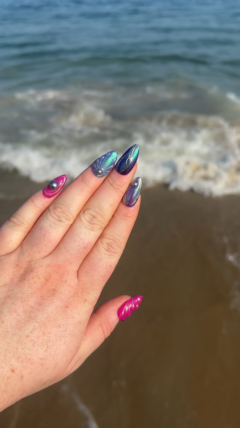 Took my mermaid nails to the beachπ§ββοΈππ