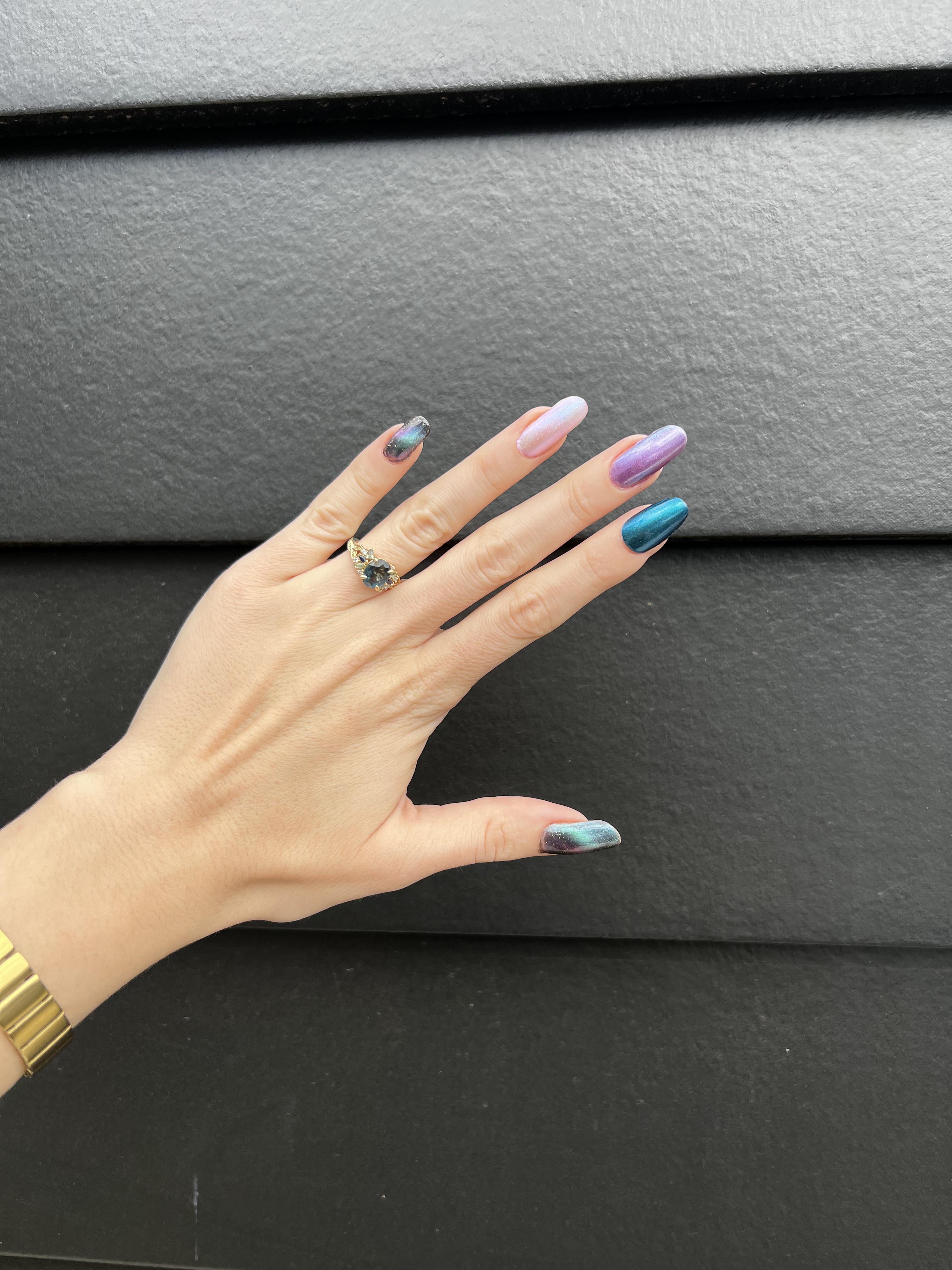thank you to my neighbor with the weird supervillain house for having the perfect fence to use as a backdrop for my space nails π
