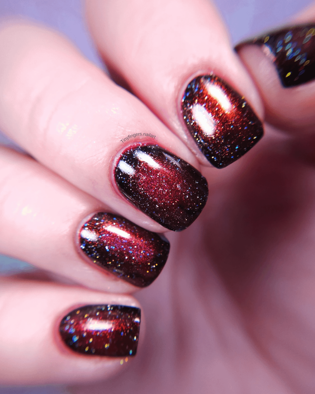 Products: Essie Licorice, Mooncat The Arsonist, Holo Taco scattered holo taco. Tutorial here https://youtu.be/XpO_G4_DsmE?si=SFZFs22SaOetnLIt by TinyFingersNailart