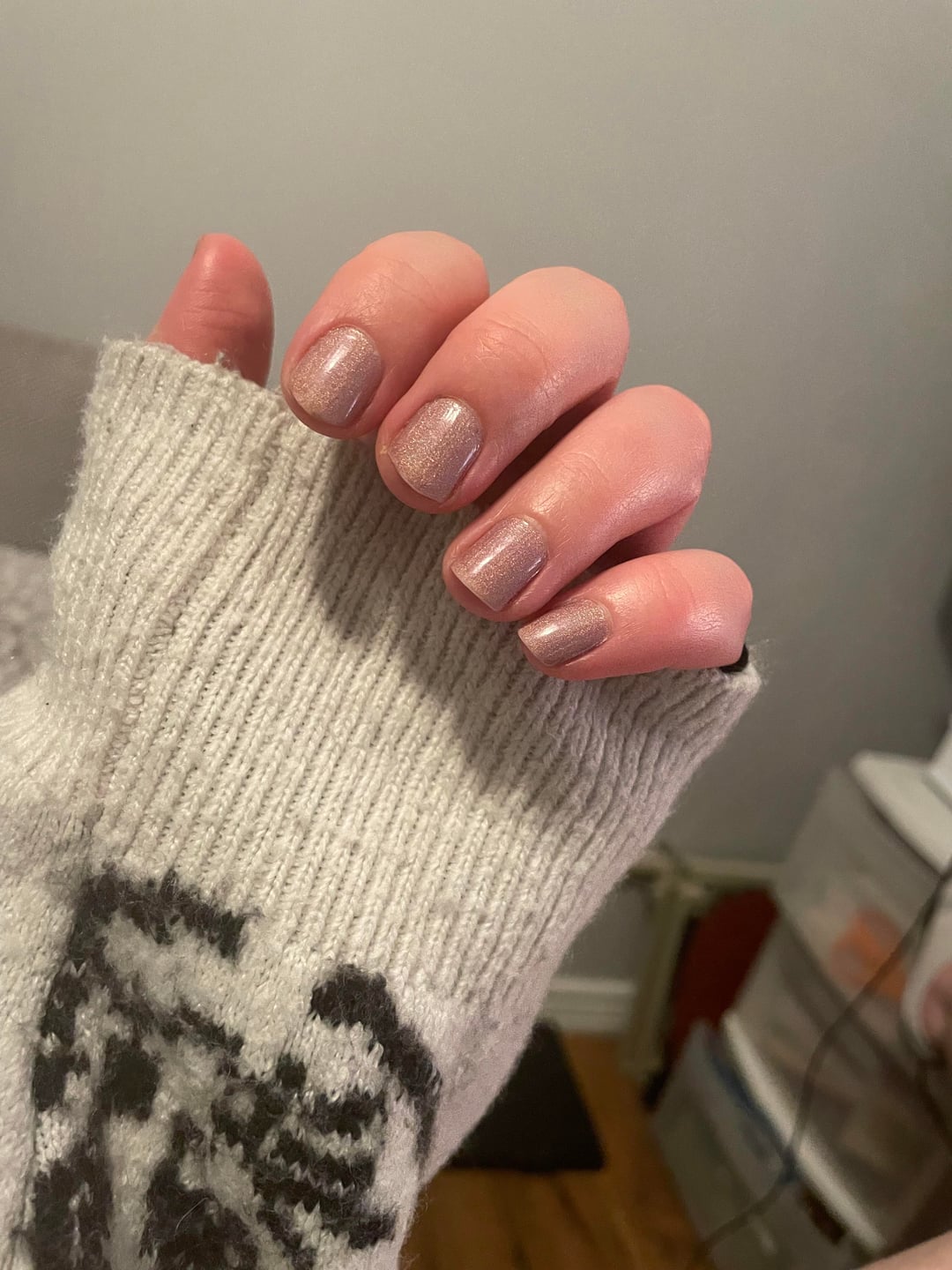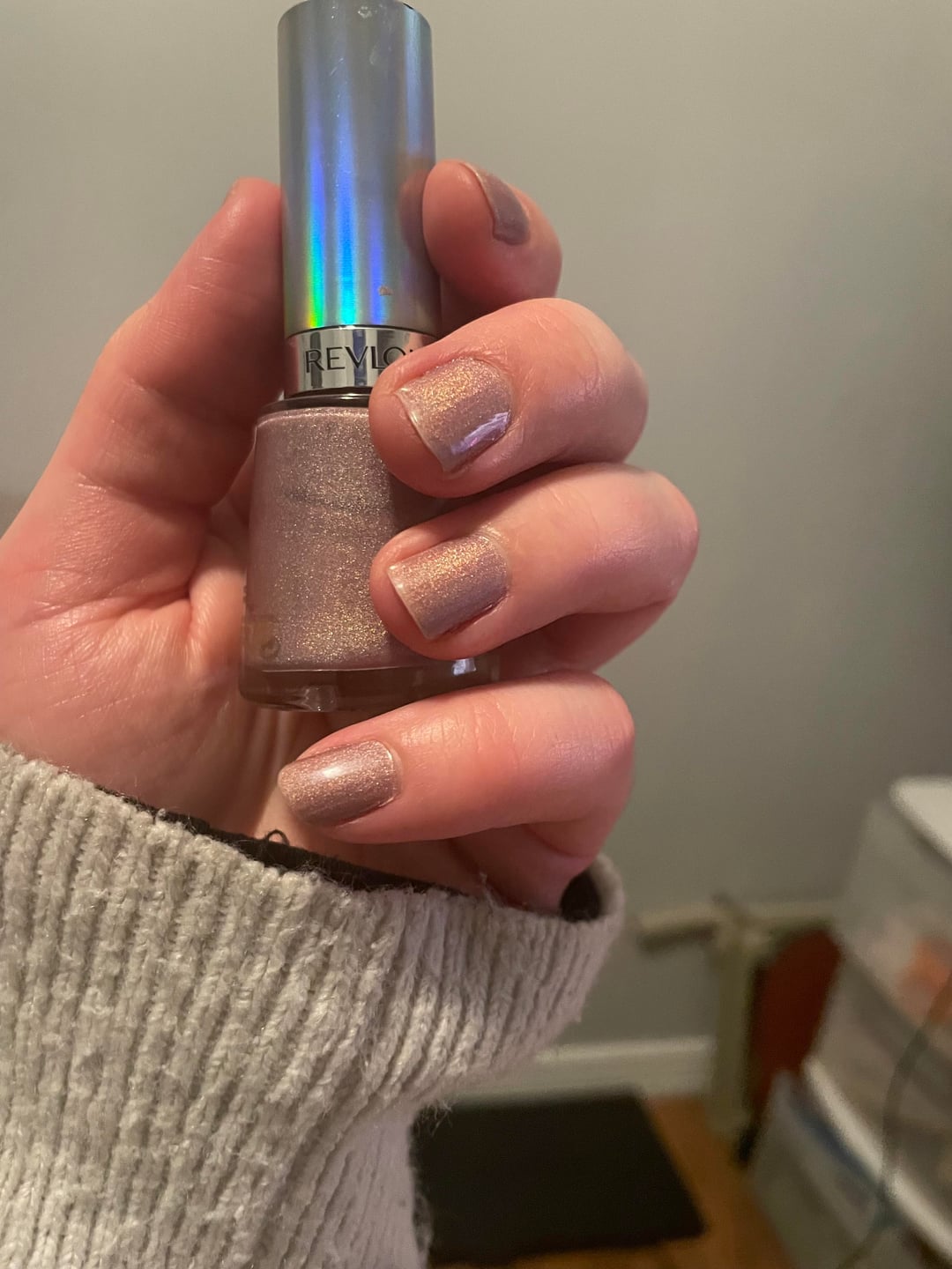 It looks more nude on me but it’s pretty. Reminds me of a granite countertop.