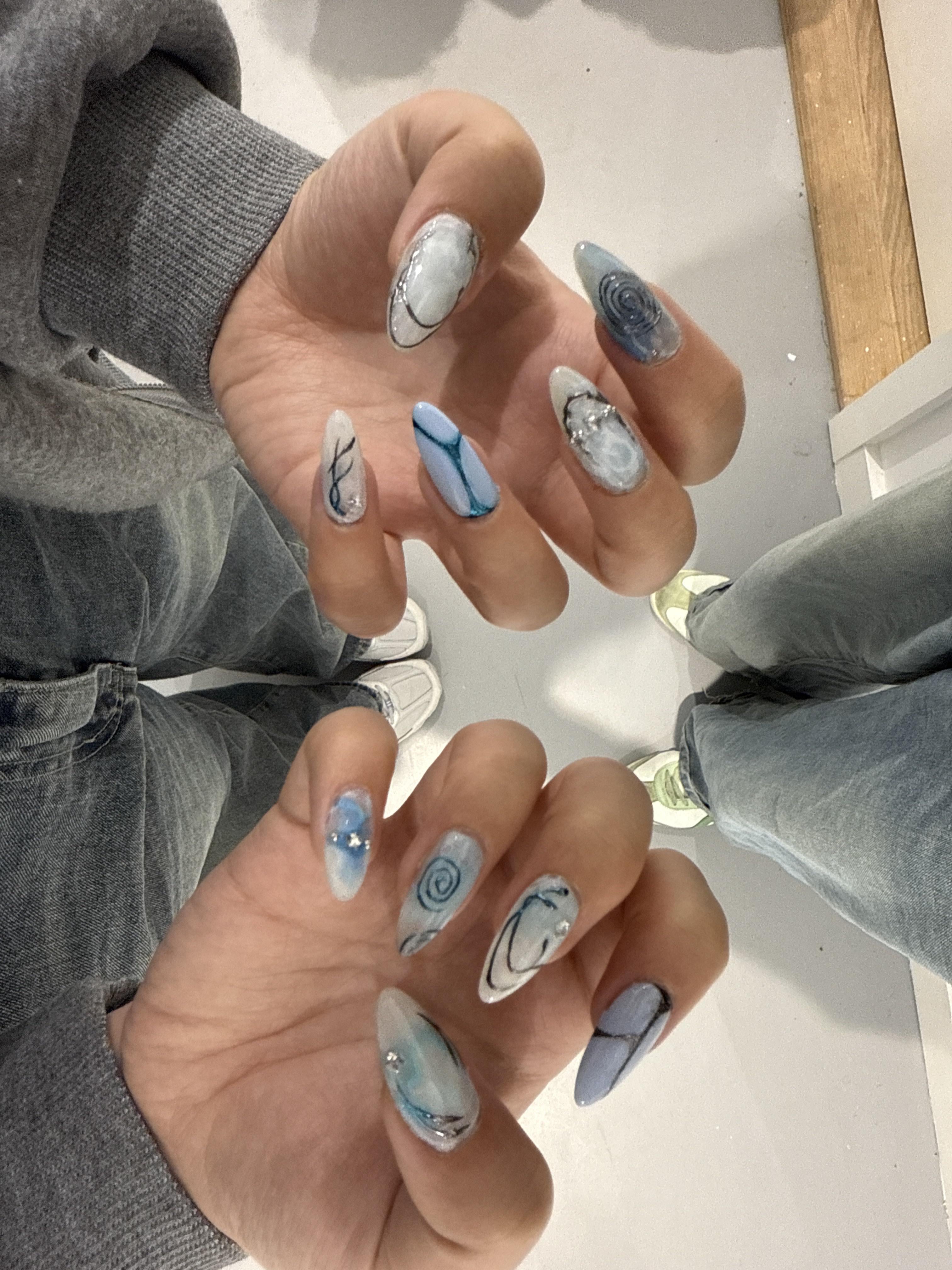 Did these in a rush to go see my bf lol, still new to nail art and gel-x in general what do you guys think? by actuallyacontinent