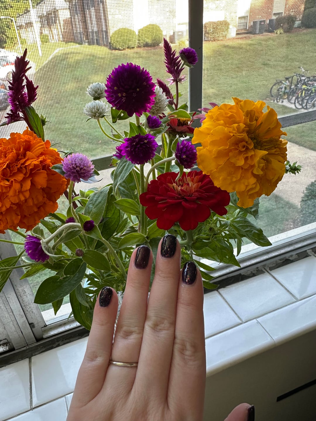Had to match these gorgeous flowers – ILNP Jinx (+ ILNP Ava on ring finger), Dazzle Dry topcoat by Sunfish73