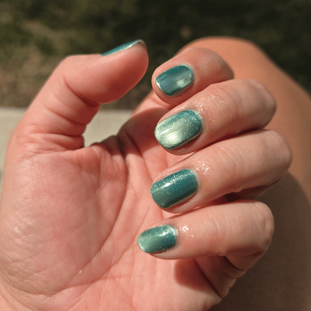 Feo, Fuerte, y Formal was also so shifty and beautiful! The colors were much softer and less bold looking than it seemed in the bottle. I loved the gold shimmer that shows up in some lights, though I didn’t get a good picture of it.