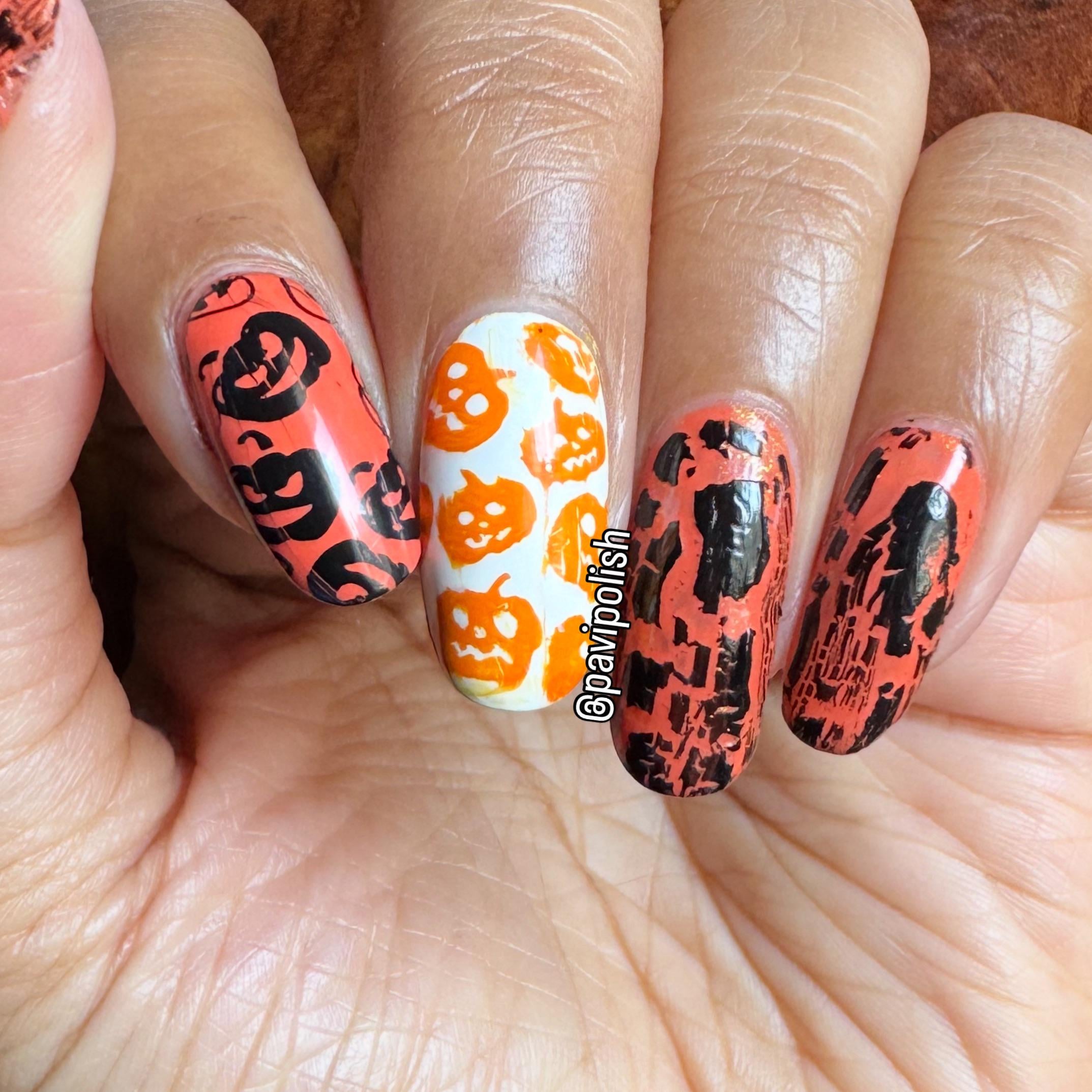 Polishes used: Sally Hansen Sun-kissed, Color Club French Tip, Color Club Crackle, Born Pretty Black stamping polish, Born Pretty Orange stamping Polish, Born Pretty L037, Seche Vite by pavipolish