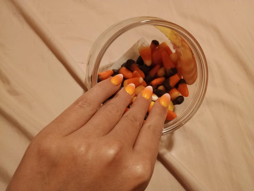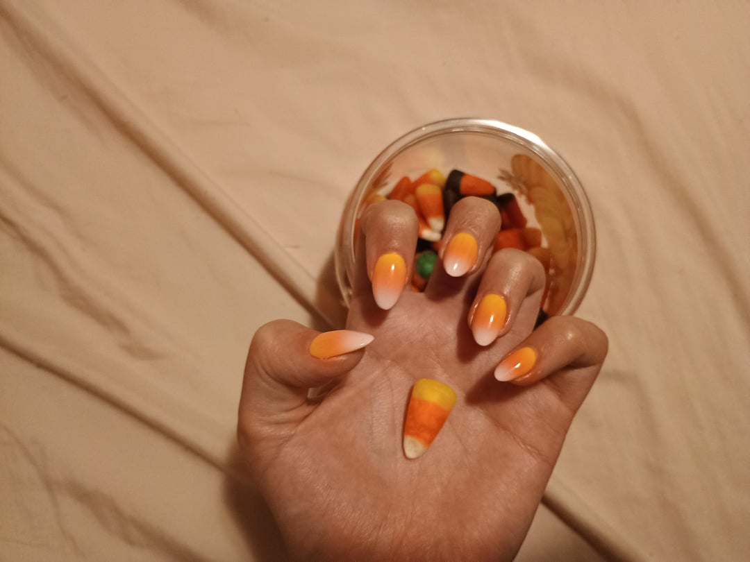 This is the first picture of candy corn nails that I really like. $125 is a lot, but prices always surprise me. I got chrome with my last appointment and they charged me $15 extra dollars to spread the chrome on my nails, which took not even 5 minutes.