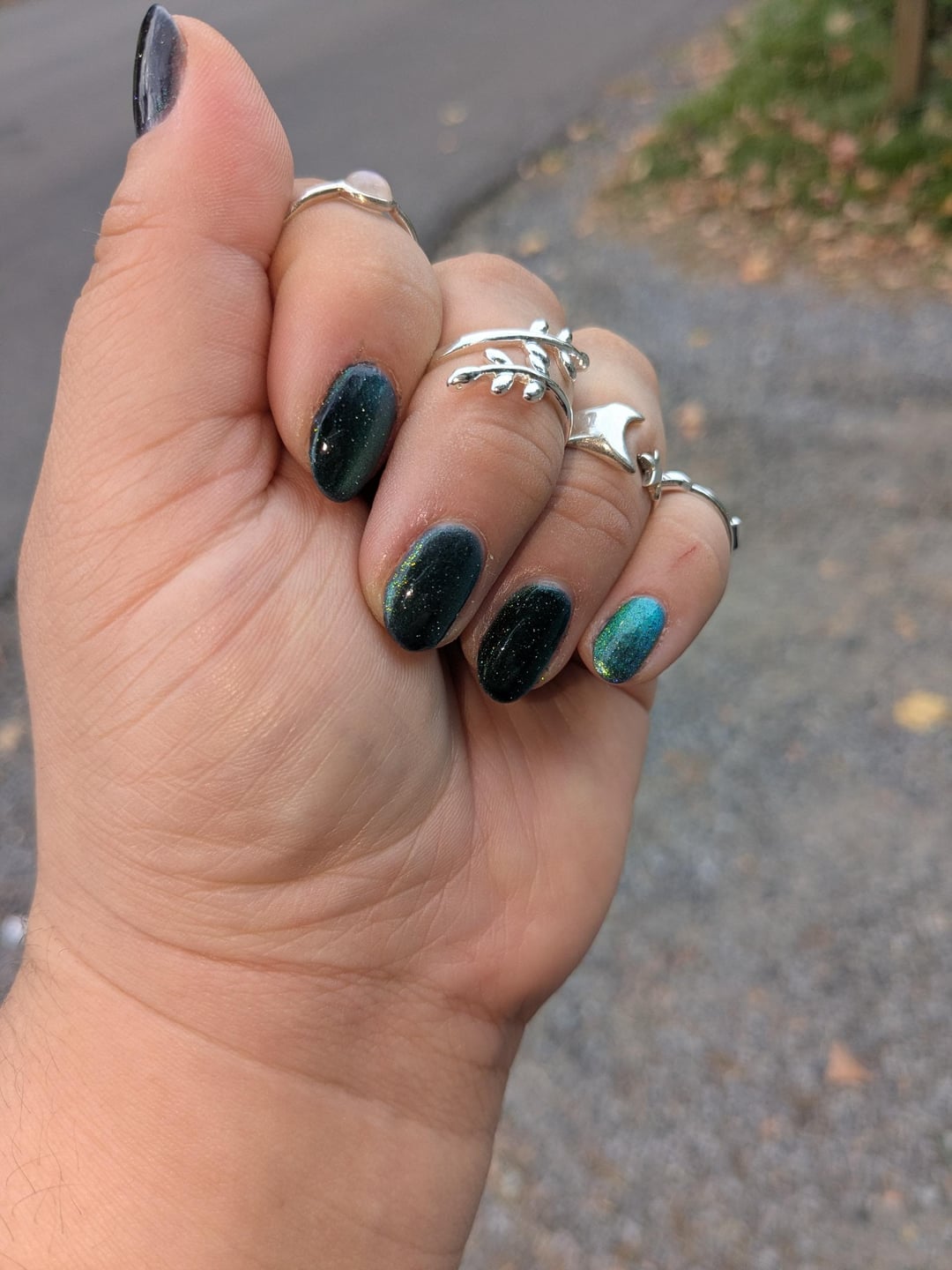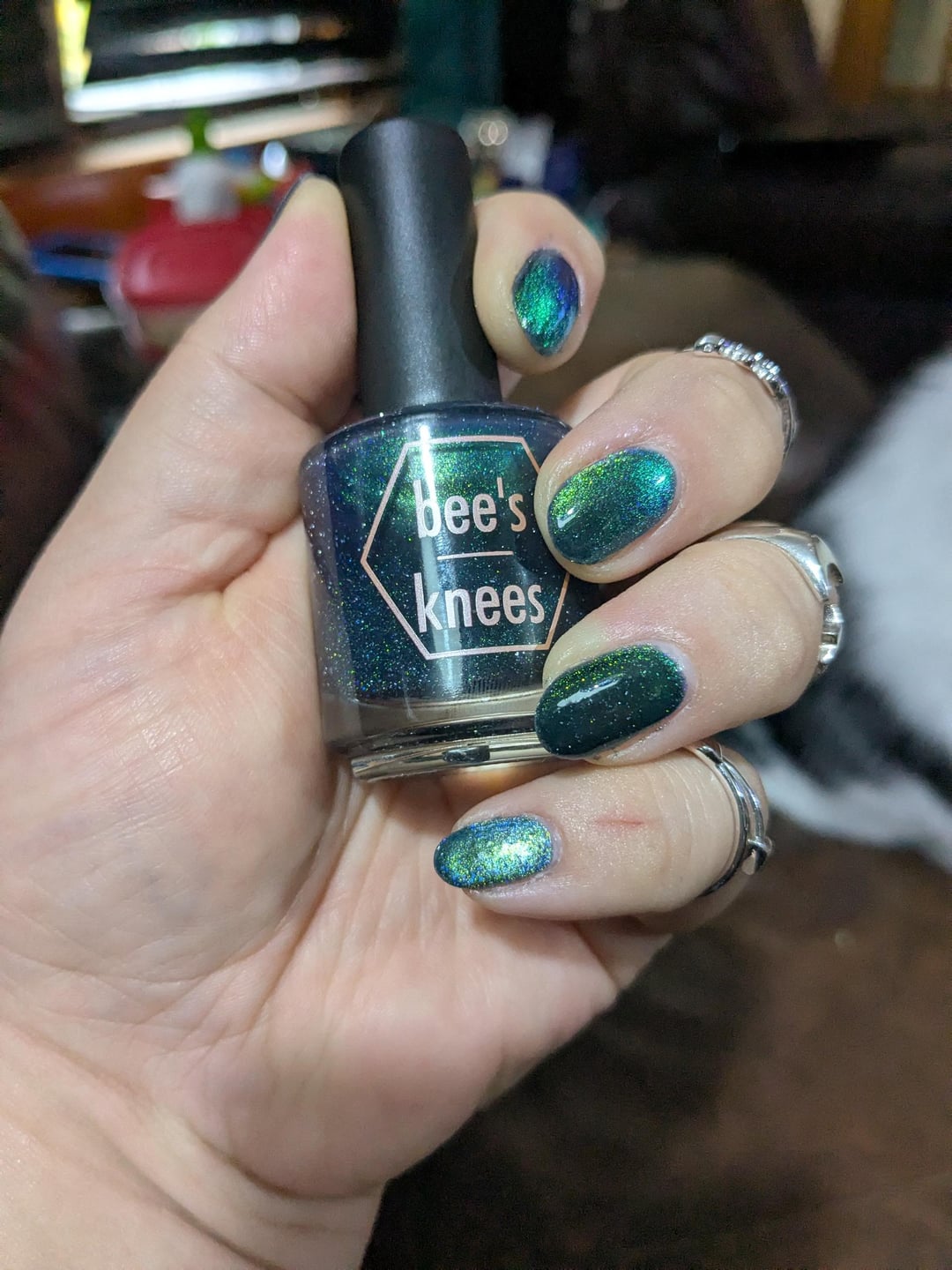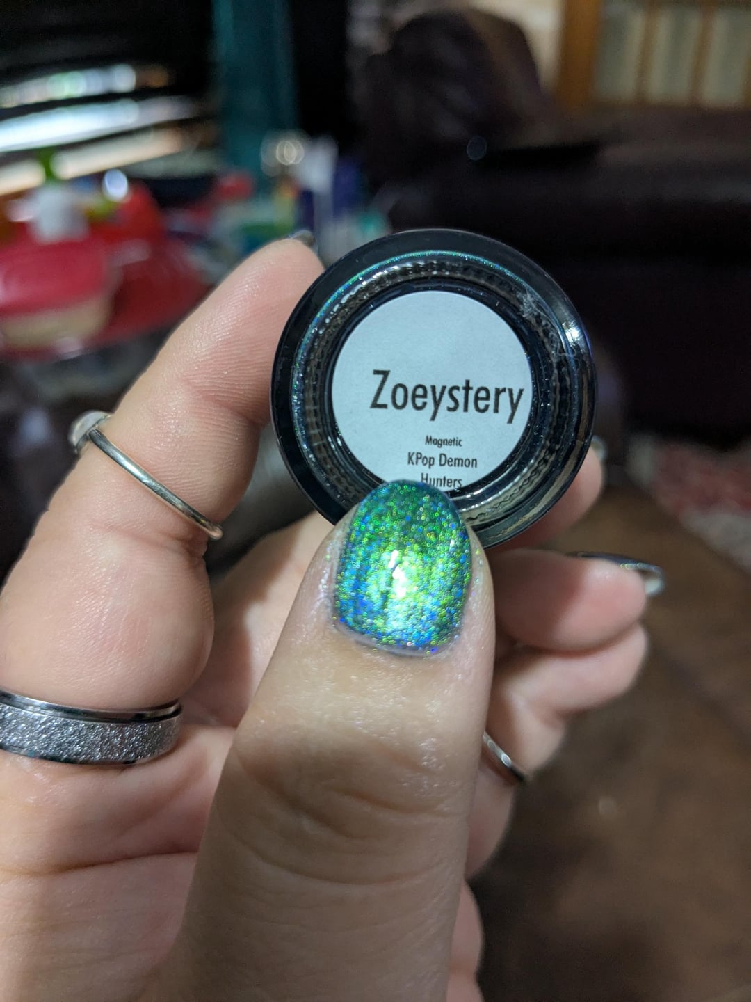 This polish is fudging amazing. Didn't do clean up but had to share it. I'm so in love with it, it's making my crappy morning sparkle! These polishes just look so amazing even just in the bottle. I've never had a mosaic magnetic polish before and I'm just in love with it.