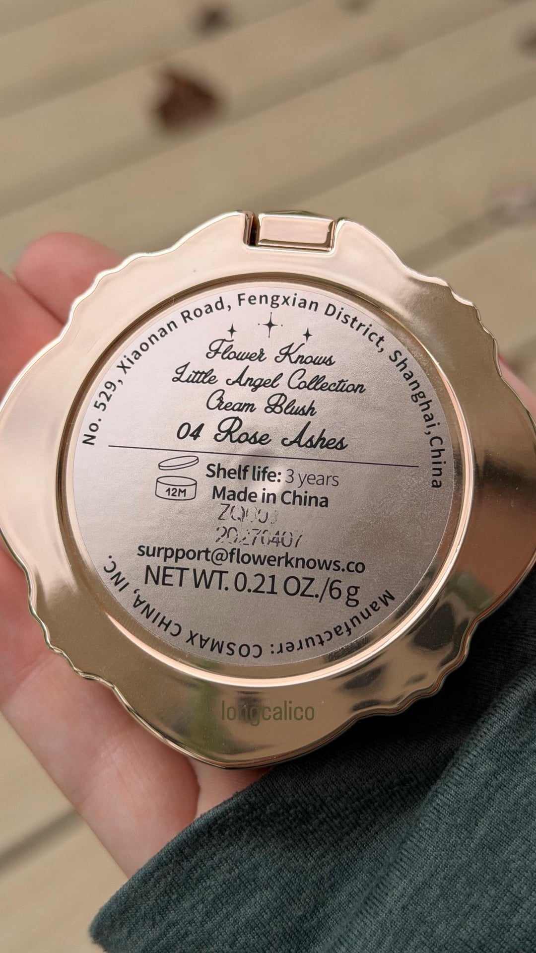 This is the Flower Knows Little Angel blush in shade 04 Rose Ashes. I find it to be a pretty standard creme formula, which works well with my dry/normal skin. The embossing and packaging, of course, are the main draws, but I find this particular shade to be a good one for fall, so this will likely get a lot of use in the coming months!