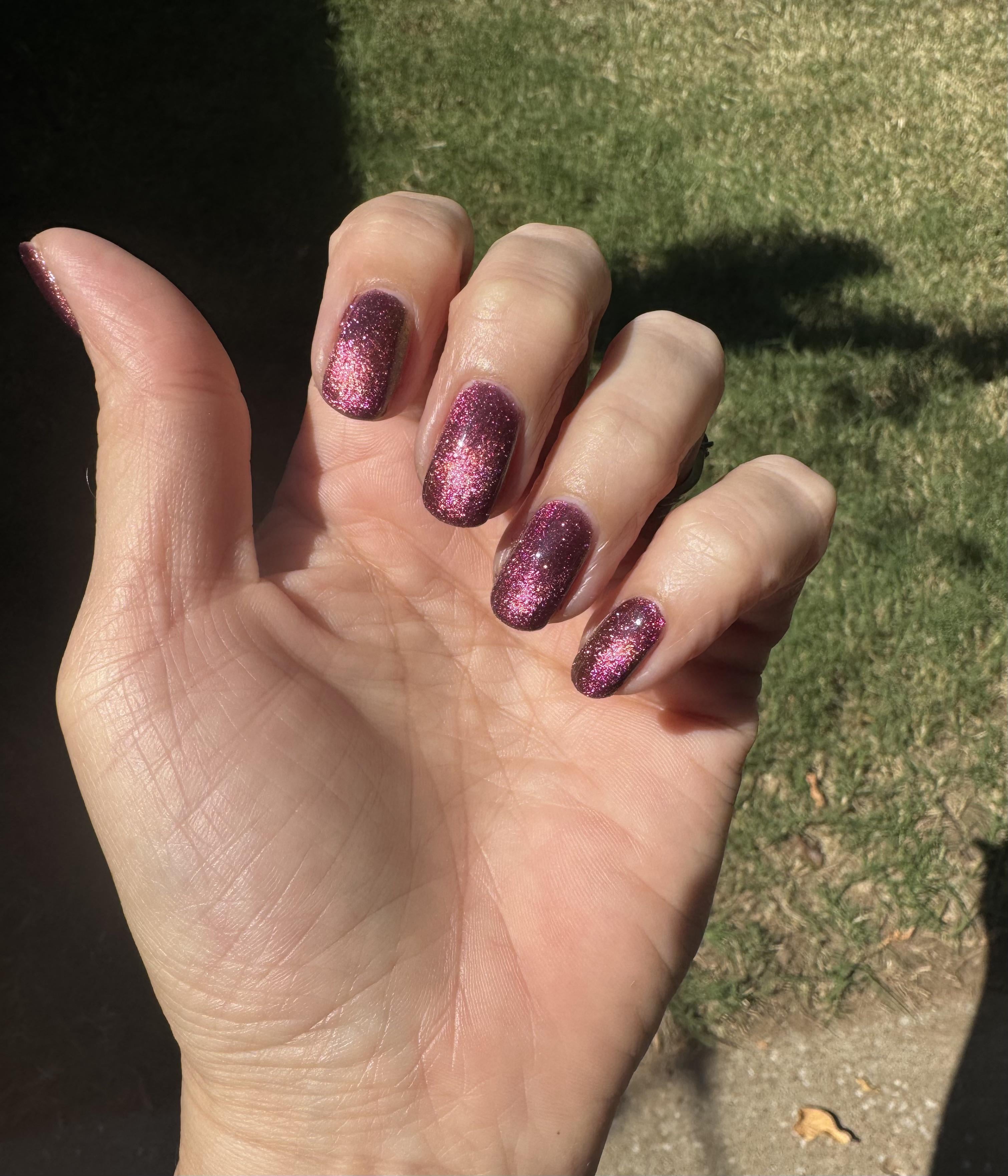 Obsessed with how pretty this is in direct sunlight. 🕶️ Velvet effect, 30lb horseshoe magnet Spirit base coat 3 coats Miromabby I’m very fast QDTC by snarkydice