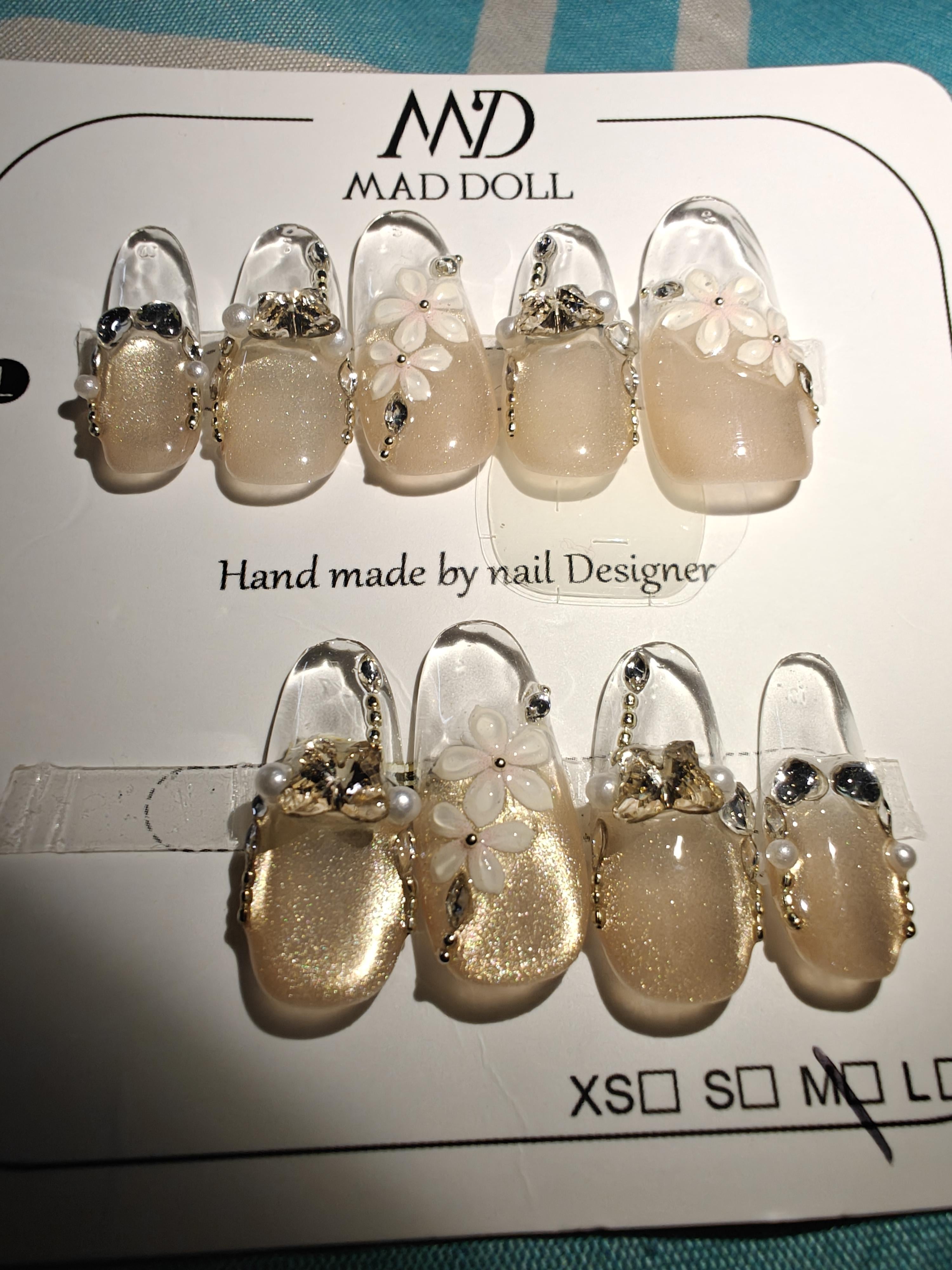 The whole nail was probably made using clear acrylic or clear builder gel and then they added the gold on the bottom and then the charms last o sort of cover thw switch from gold to clear