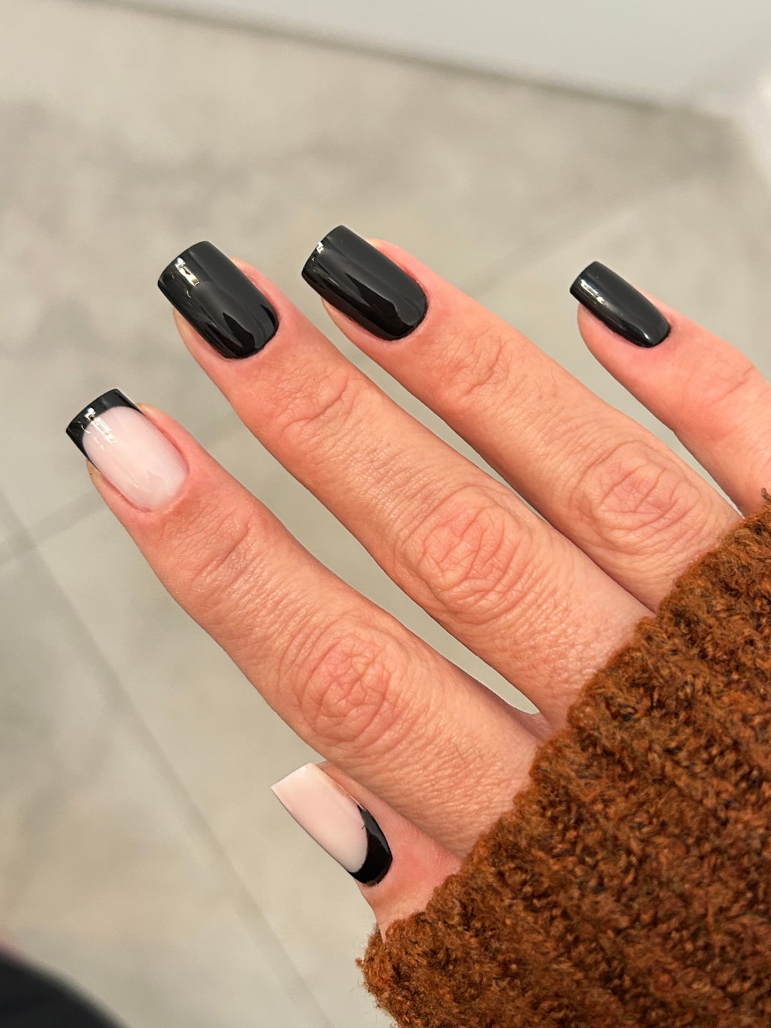 I currently have similar nails; square and a black French. It’s my favorite combo 🤩