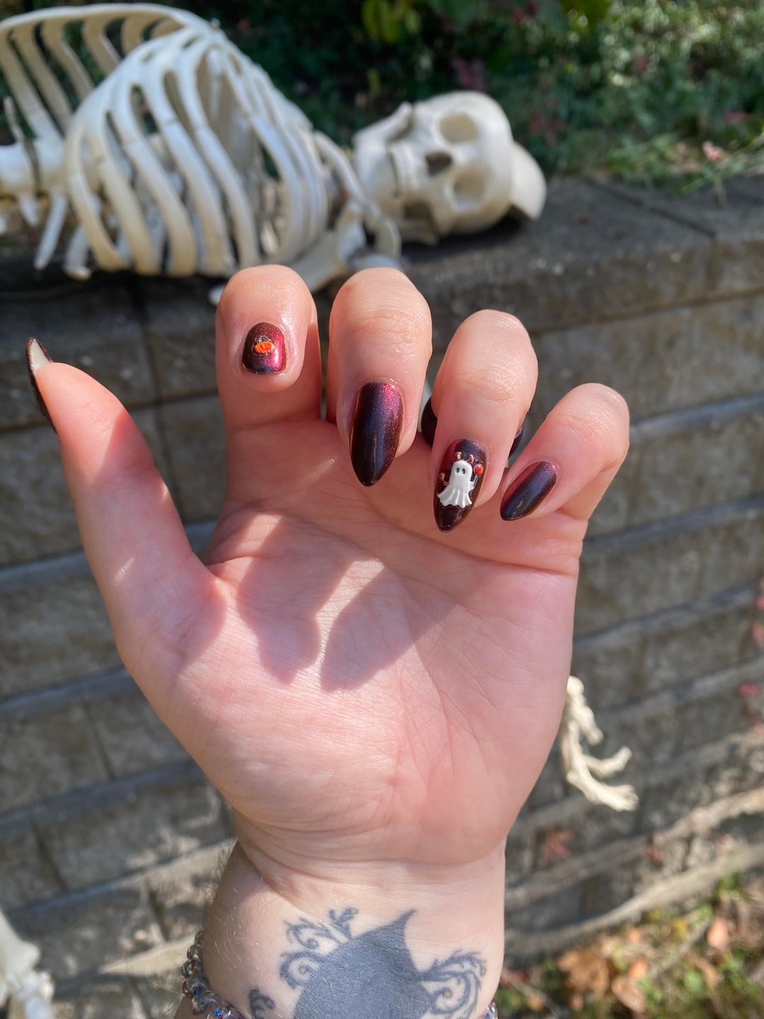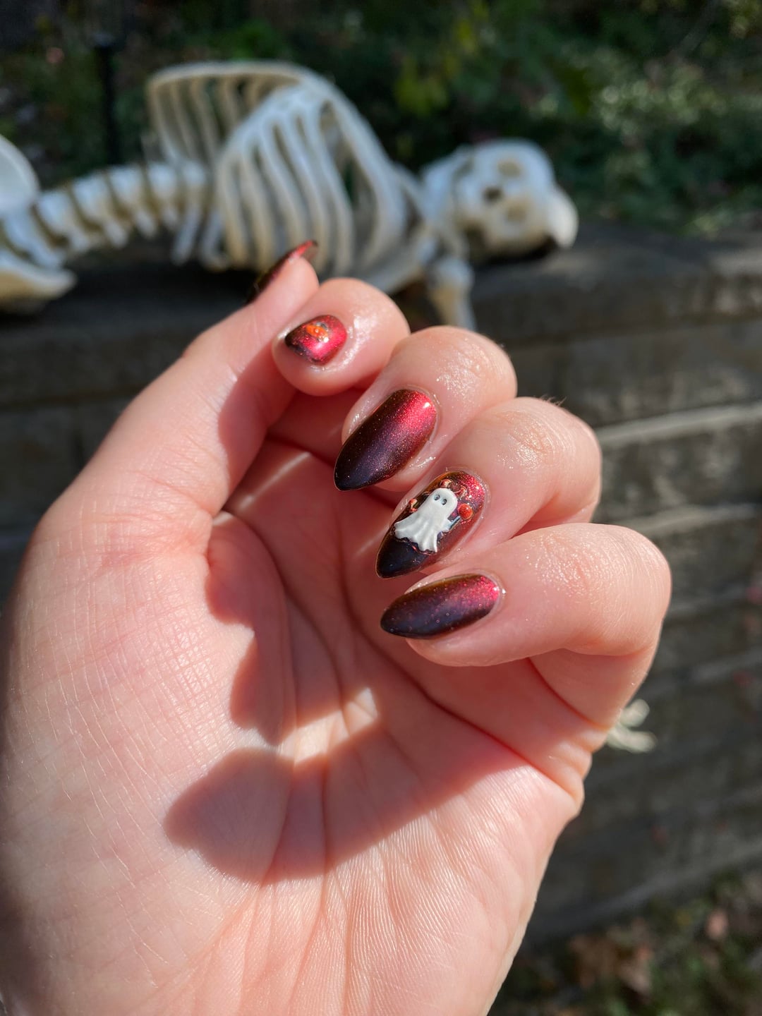 My first ever, clumsy as hell, attempt at negative space nail art. Fun topcoat added to try and distract a bit from how messy it is, but I’m still happy enough with it to feel like sharing!