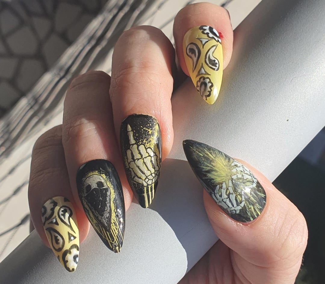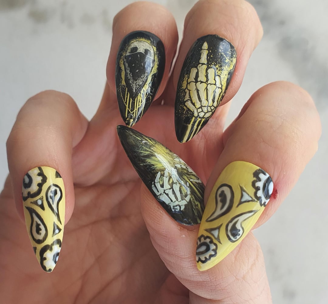 For this set, I used : – polishes : yellow, black, white – stickers and decals – luminescent top coat Glossy top coat by Key_Opportunity_7082
